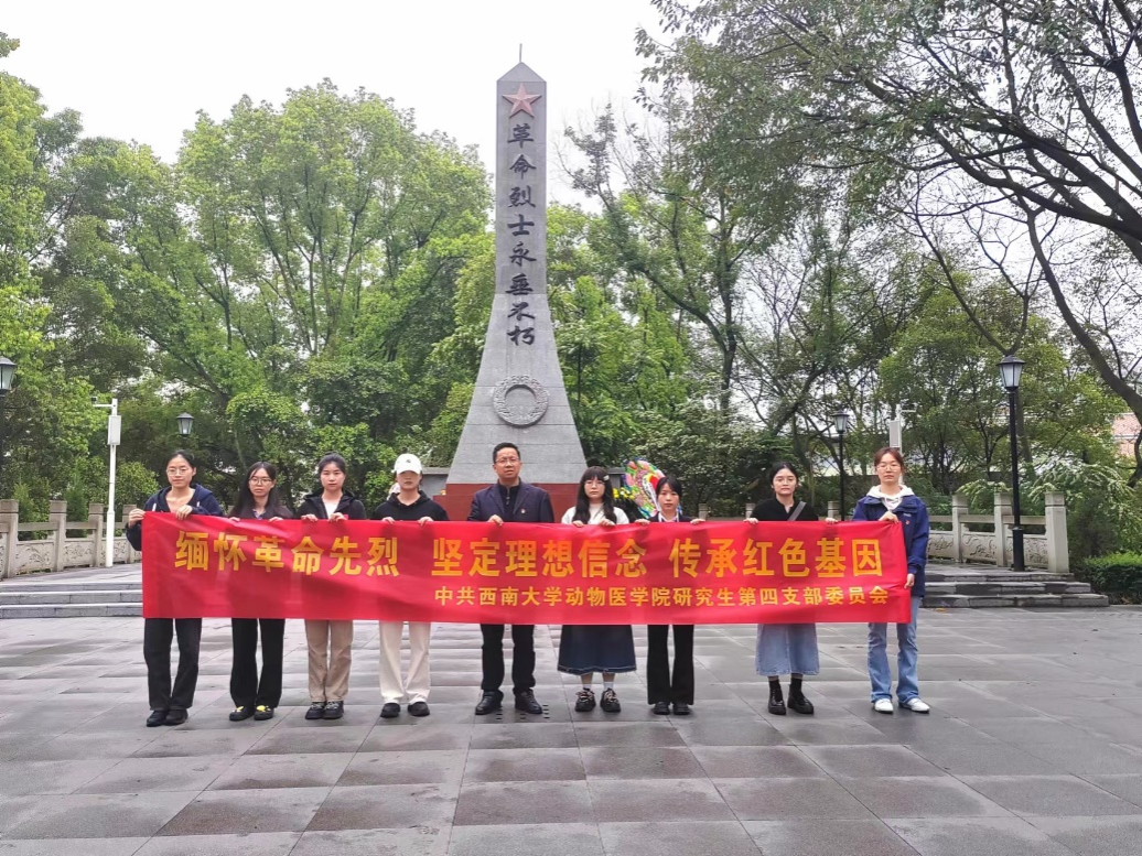 为缅怀革命先烈,传承红色基因,引导广大青年厚植爱国主义精神,坚定理想信念,4月6日下午,bevictor1946韦德官网研究生第四党支部书记易华山,支委吴婵玉、马成军组织支部党员、入党积极分子代表前往荣昌区海棠公园革命烈士陵园,开展“缅怀革命先烈,坚定理想信念,传承红色基因”主题党日-“铸魂•2024•清明祭英烈”活动。