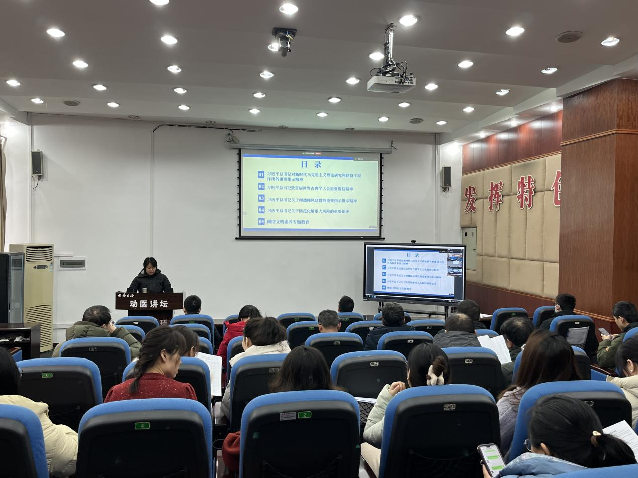 2024年12月13日,公司在荣昌、北碚同步召开2024年第十次教职工政治理论学习,集中学习了习近平总书记对新时代马克思主义理论研究和建设工程作出的重要指示精神、习近平总书记致首届世界古典学大会重要贺信精神、习近平总书记关于师德师风建设的重要指示批示精神、习近平总书记关于防范化解重大风险的重要论述、网络文明素养专题教育等五个方面内容。