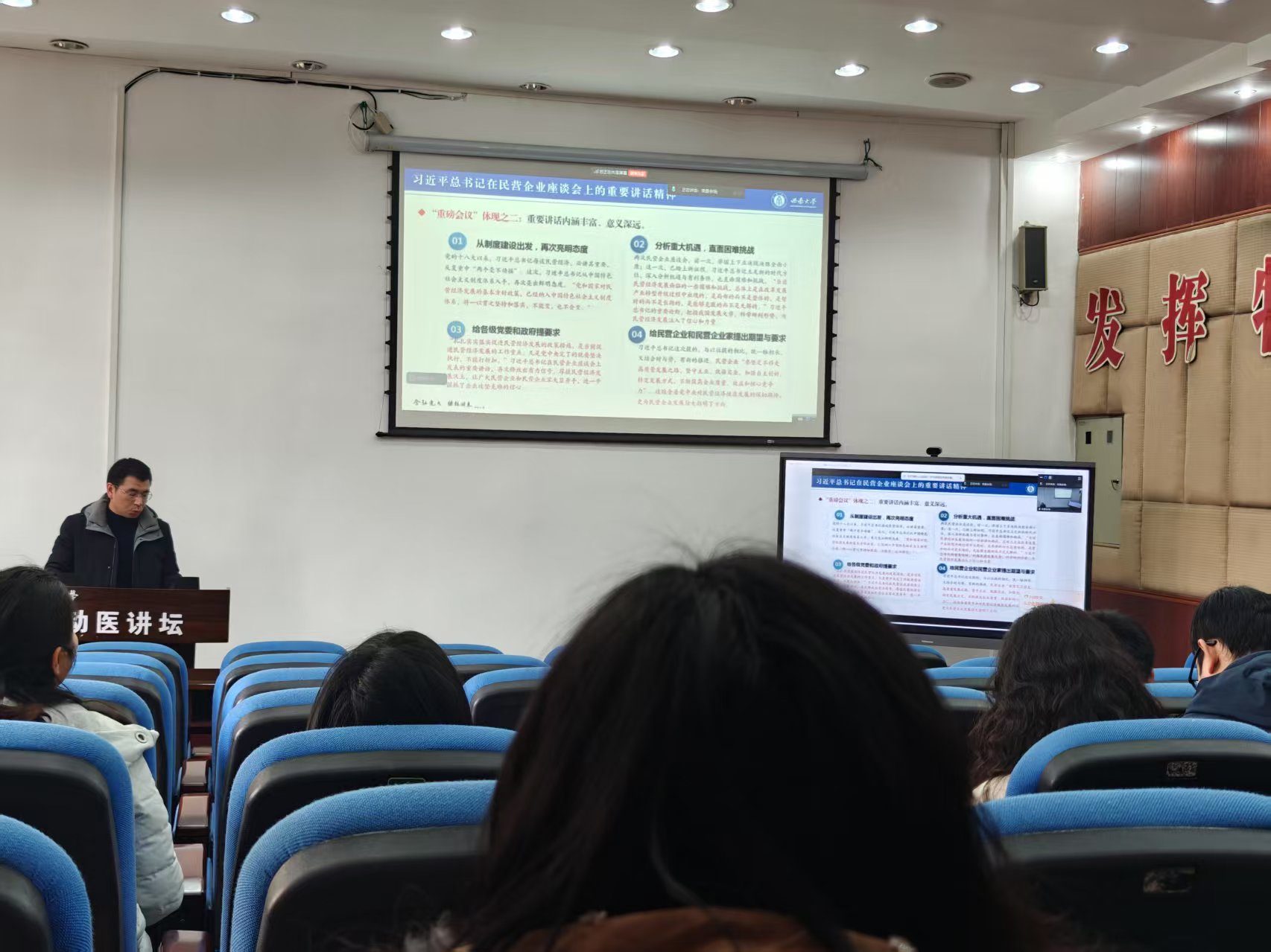 2025年2月28日,动物医公司在荣昌、北碚同步召开2025年第二次教职工政治理论学习,集中学习了习近平总书记在民营企业座谈会上的重要讲话精神、《求是》杂志发表的习近平总书记重要文章《注重家庭,注重家教,注重家风》、2025年春季学期干部大会精神。