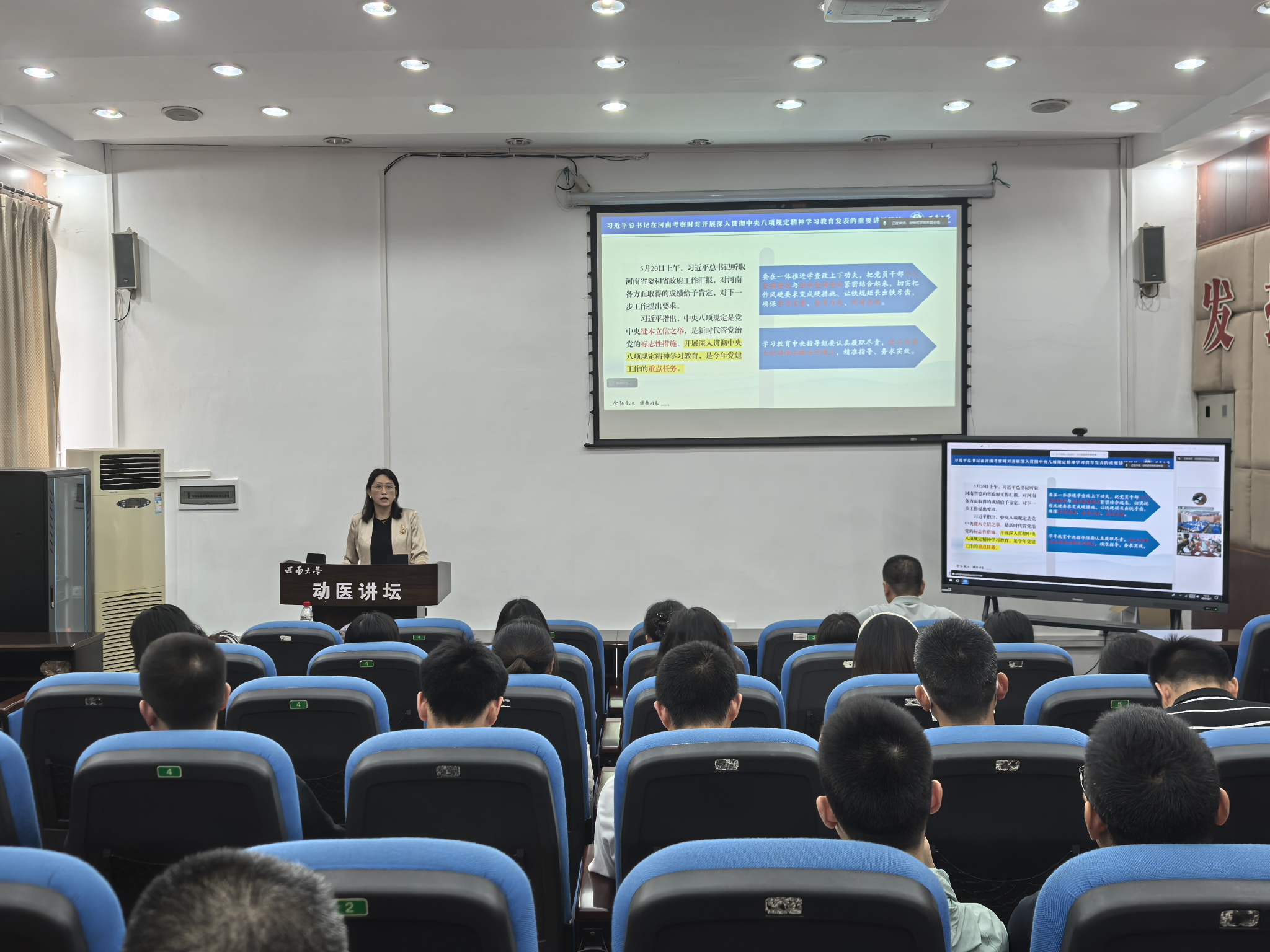 锲而不舍落实中央八项规定精神。会议重点学习了习近平总书记在河南考察时对就深入贯彻中央八项规定精神学习教育发表的重要讲话精神,以及《求是》杂志发表的习近平总书记重要文章《锲而不舍落实中央八项规定精神,以优良党风引领社风民风》。李海燕领学相关内容,要求全体教职工深刻领会精神实质,切实抓好贯彻落实,持续巩固作风建设成效。
