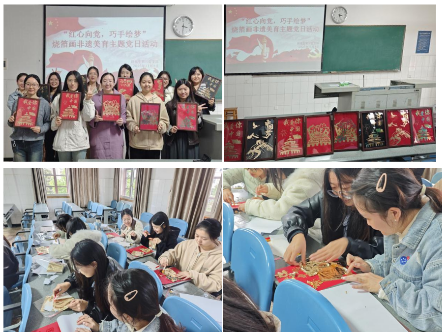 为深入贯彻落实党的二十届四中全会精神,积极探索党建与美育深度融合的创新模式,2025年11月4日,bevictor1946韦德官网研究生第三党支部精心策划并成功举办了一场别开生面的“红心向党,巧手绘梦”烧箔画非遗美育主题党日活动。此次活动不仅是一次艺术创作实践,更是一场生动的党性教育与文化传承之旅。
