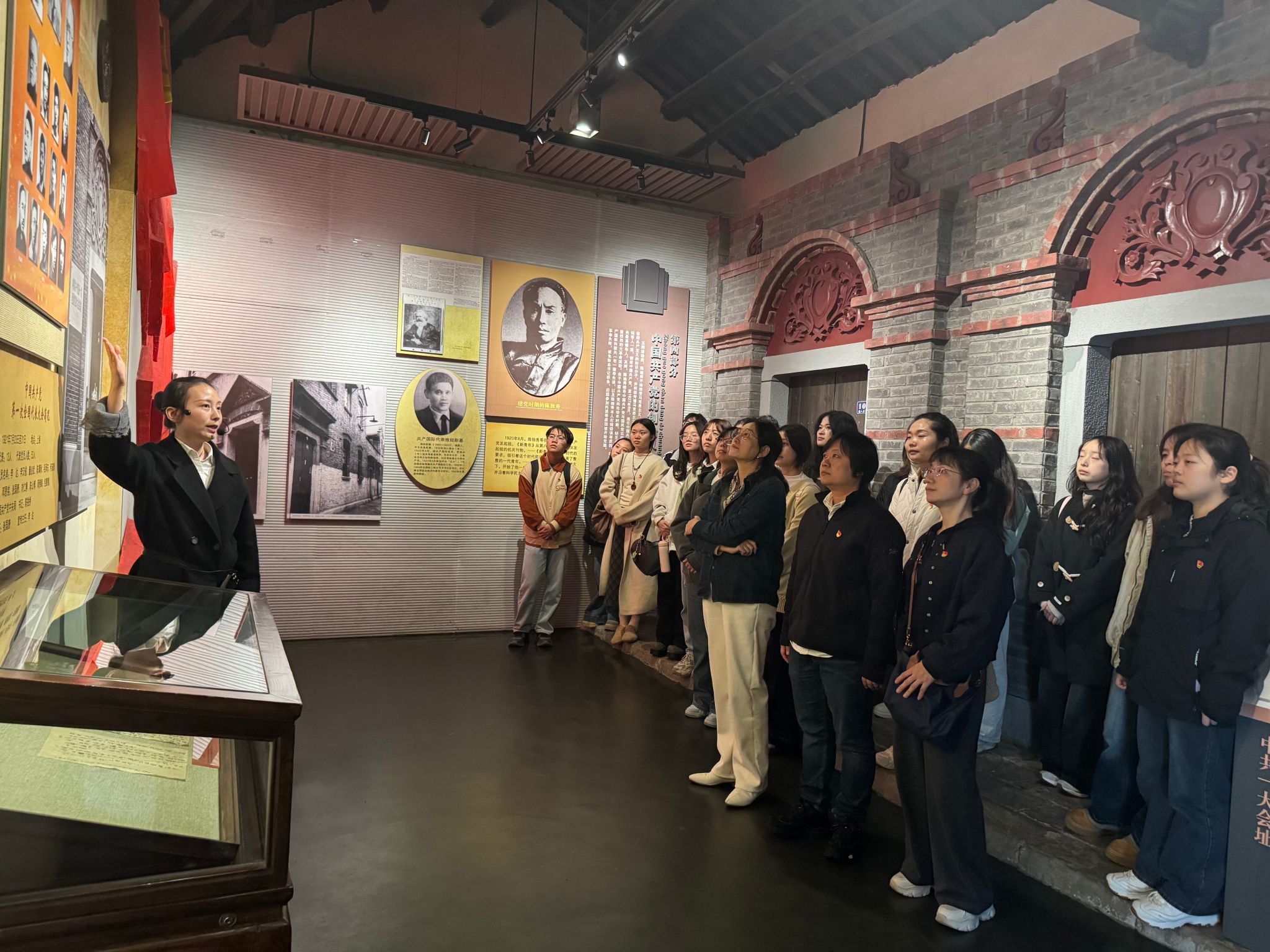 随后,队伍前往陈独秀旧居参观学习。通过陈列实物、历史资料与现场讲解,同学们回顾了其在近代思想启蒙与建党初期的重要贡献,客观认识其复杂的人生历程与历史地位。这段历史使大家更加深刻体会到中国共产党诞生的历史必然性与道路探索的艰巨性,进一步认识到坚持正确政治方向、勇于坚持真理、善于修正错误的极端重要性。
