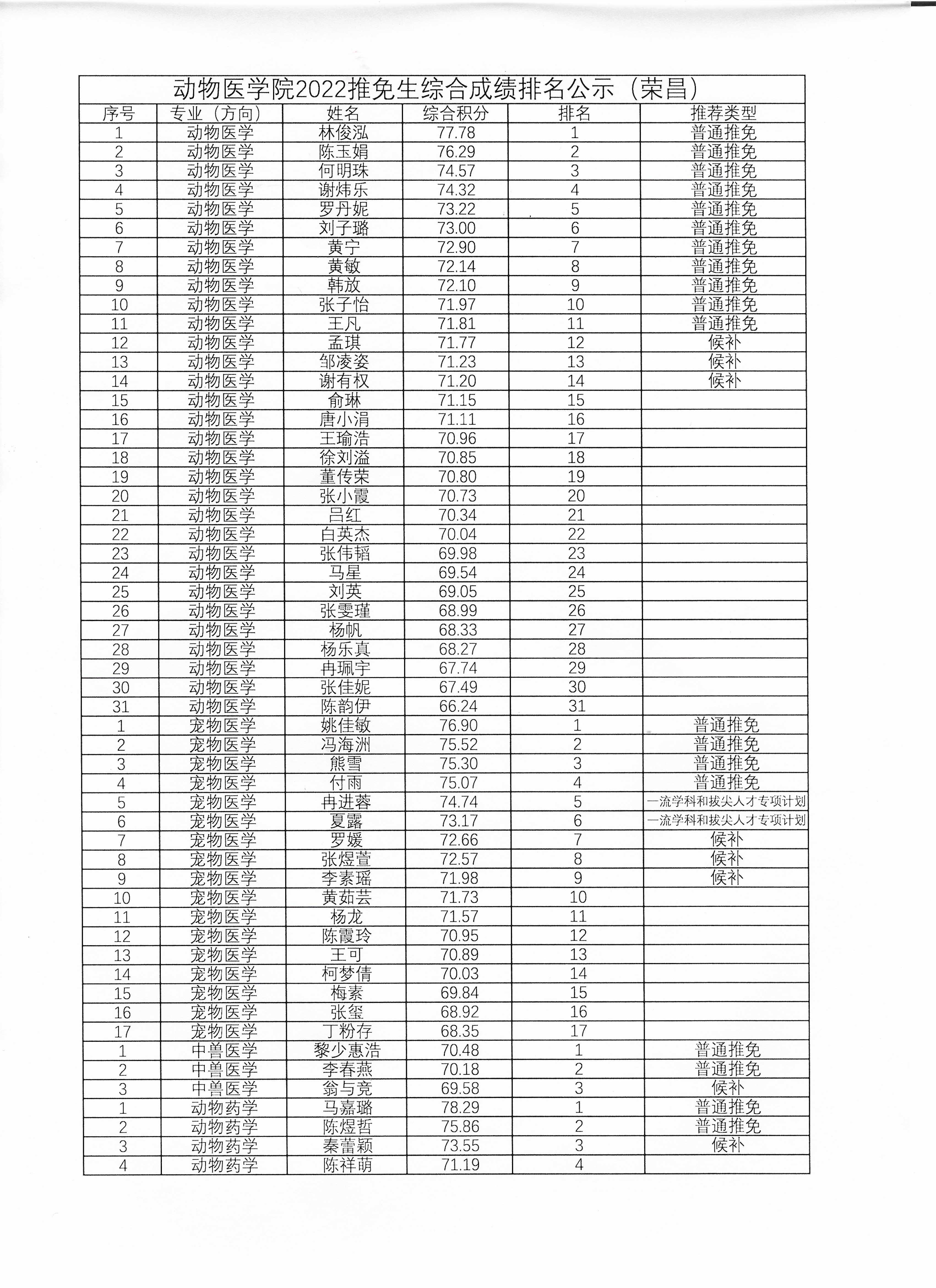 bevictor1946韦德官网2022推免生综合成绩排名公示