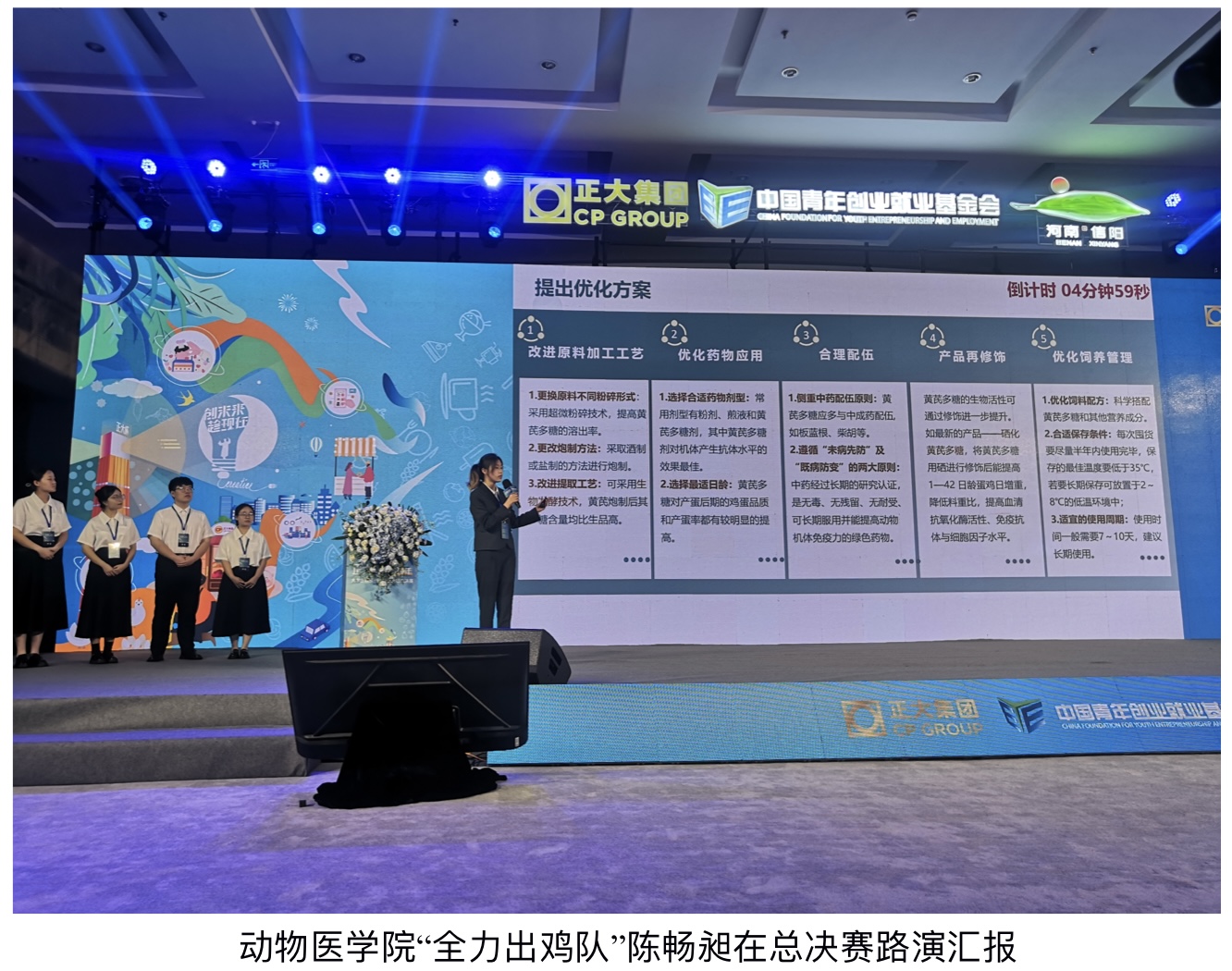 “强国先强农”,培养理论知识+实战能力兼备的实战人才,正大集团协同全国农业高校,积极拓展协同育人渠道,为畜牧兽医青年学子提供展现自己的平台。bevictor1946韦德官网万金梅、陈畅昶、赵茂琳、刘嘉仪和魏辰宇五位同学组成的“全力出鸡队”在易华山副教授的指导带领下,“蛋鸡替抗产品--黄芪多糖优化商业计划书”项目在初赛蛋鸡科技健康养殖组中以一等奖的佳绩晋级全国总决赛,最终,bevictor1946韦德官网“全力出鸡队”与中国农业大学“苍穹之力队”和“天下无瘟--非洲猪瘟防控新技术推广队”获得该赛道的银奖。