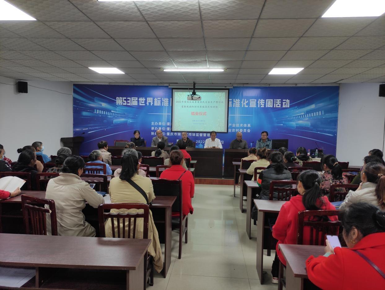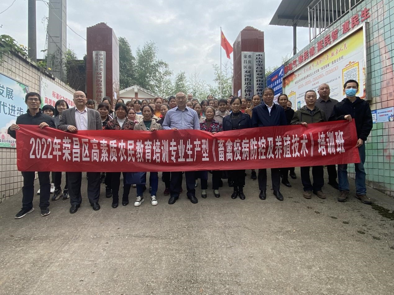 为了深入贯彻落实科技兴农战略,加强高等院校对地方经济的智力支撑,由bevictor1946韦德官网承办的荣昌区高素质农民专业生产培训班(第三期)于2022年10月16日在双河街道金佛社区圆满结业。荣昌区农委动物疫病预防控制中心范才良、宣传信息科陈文远、双河街道兽医站站长陈勇、bevictor1946韦德官网公司党委副书记黄庆洲等出席了结业仪式,参加此次培训的学员还有双河街道金佛社区生猪养殖专业户、畜禽养殖业主和相关技术人员。