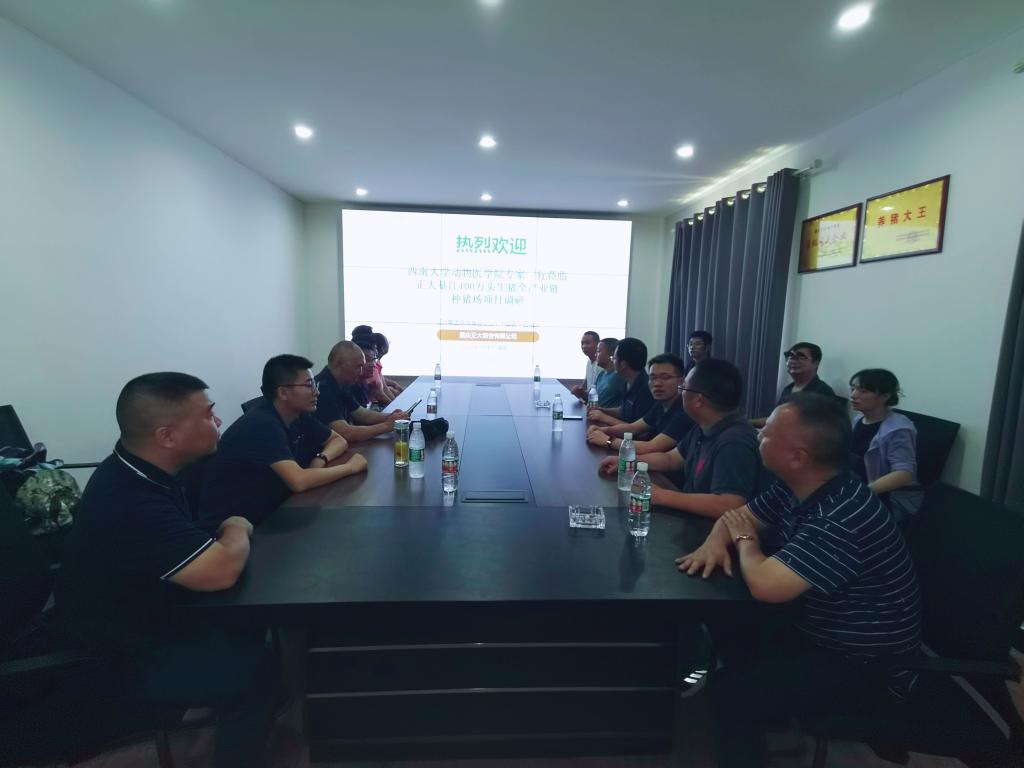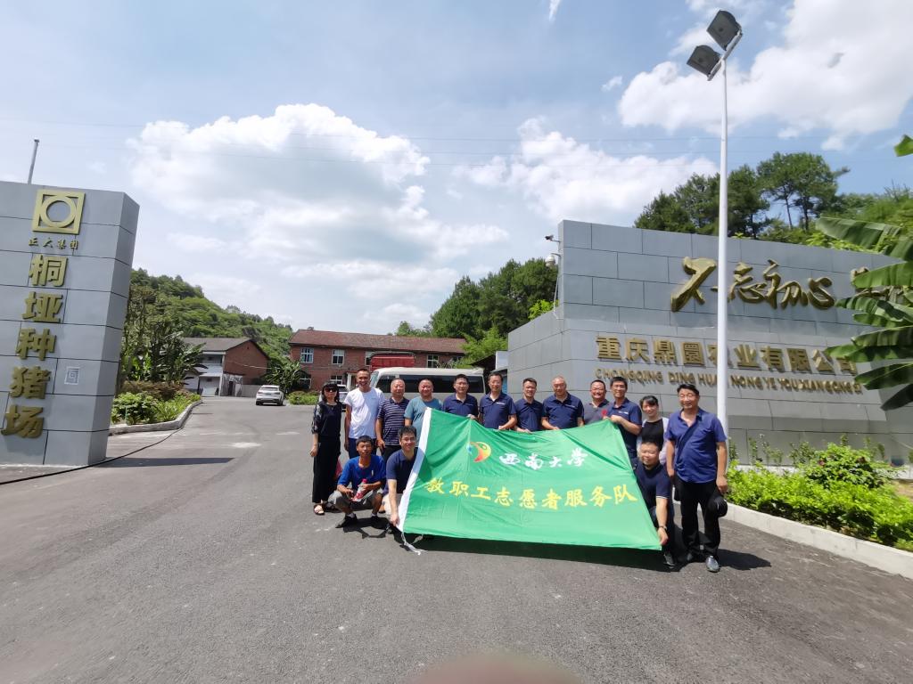 在綦江区农业农村委畜牧站叶昭辉站长和工作人员周莉的陪同下,服务队一行分别到古南街道、三角镇、石壕镇、安稳镇等4个街镇深入基层、开展实地调研,走访了当地以大规模自动化养殖为代表的正大集团綦江项目部(桐垭种猪场、石壕公猪站、石壕养殖场),“公司+农户”经营为代表的蜀京农业有限公司,家庭农场为代表的卢鸿家庭农场,以及屠宰加工企业代表鸿强食品有限公司等畜牧业产业链中不同模式的养殖单位与上下游实体。服务队每到一处,都与养殖业主和企业主详细交谈,了解生产情况,指导饲养管理与疫病防控,并向部分养殖单位赠送了消毒液、驱虫药与防暑方剂等。在三角镇正大集团种猪场(鼎圜农业公司),服务队与正大集团、区农业农村委开展座谈,全面了解正大集团在綦江的发展模式、产业布局、生产情况等,就养殖场建设、饲养管理、疫病防控等进行技术指导和深入交流;并围绕培育兽医专业人才,为畜牧产业发展保驾护航进行了深入探讨。