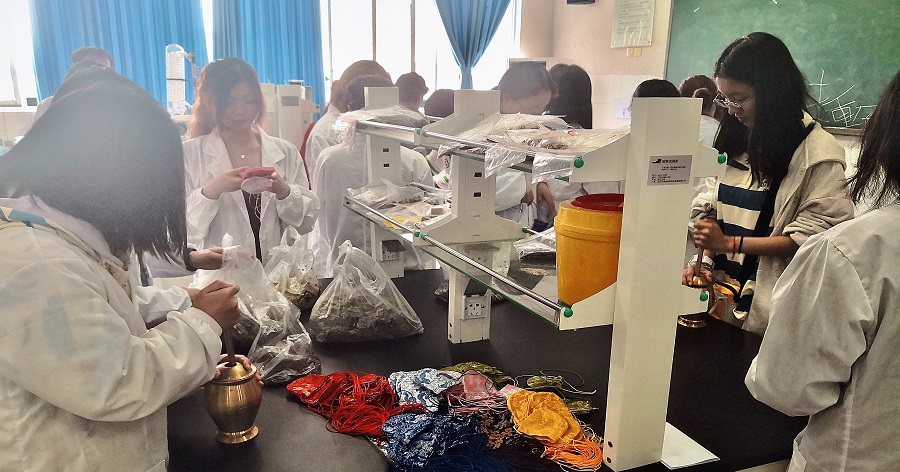 活动中,中兽医系董世起老师莅临现场为同学们进行讲解和指导。董老师向同学们介绍了所选用的中药药材的功效,指导大家正确使用药船、捣臼等传统研磨工具,鼓励参加活动的同学们积极动手研磨草药制作香囊,并向同学们普及了一些在日常生活中常用到的药材功效及其日常应用。活动如火如荼地进行,捣碾杵磨、过筛、再碾、收集、装囊,同学们沉浸其中,表现出色。