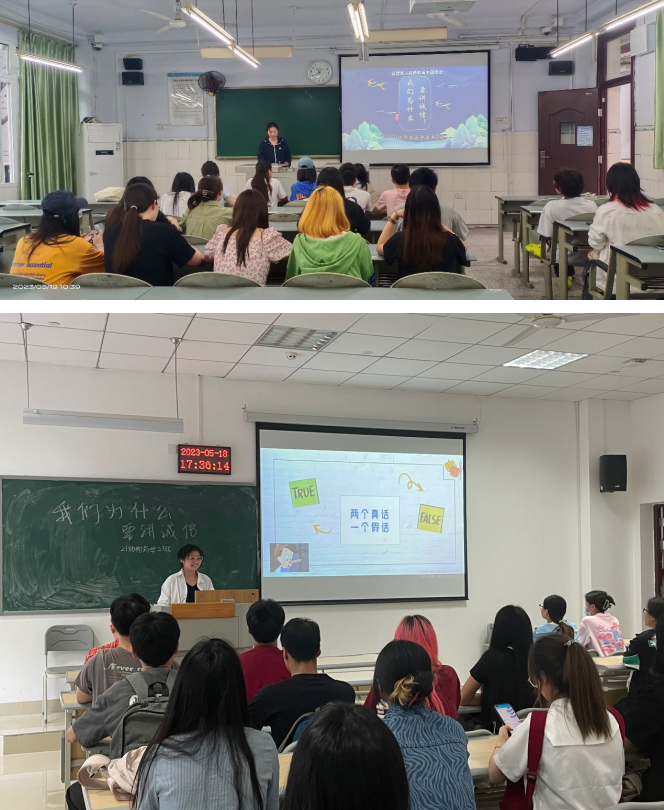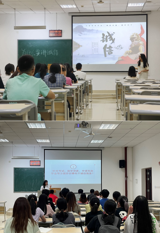 主题班会活动形式丰富,包括辩论、讨论、互问互答、游戏、分享故事等,充分调动了全体同学的积极性,班会针对考试、助学贷款、申请奖助学金、学术科研等方面存在的不讲诚信现象进行讨论,引导员工思考不讲诚信现象的成因及危害,促使员工树立诚信观念、增强法律意识。