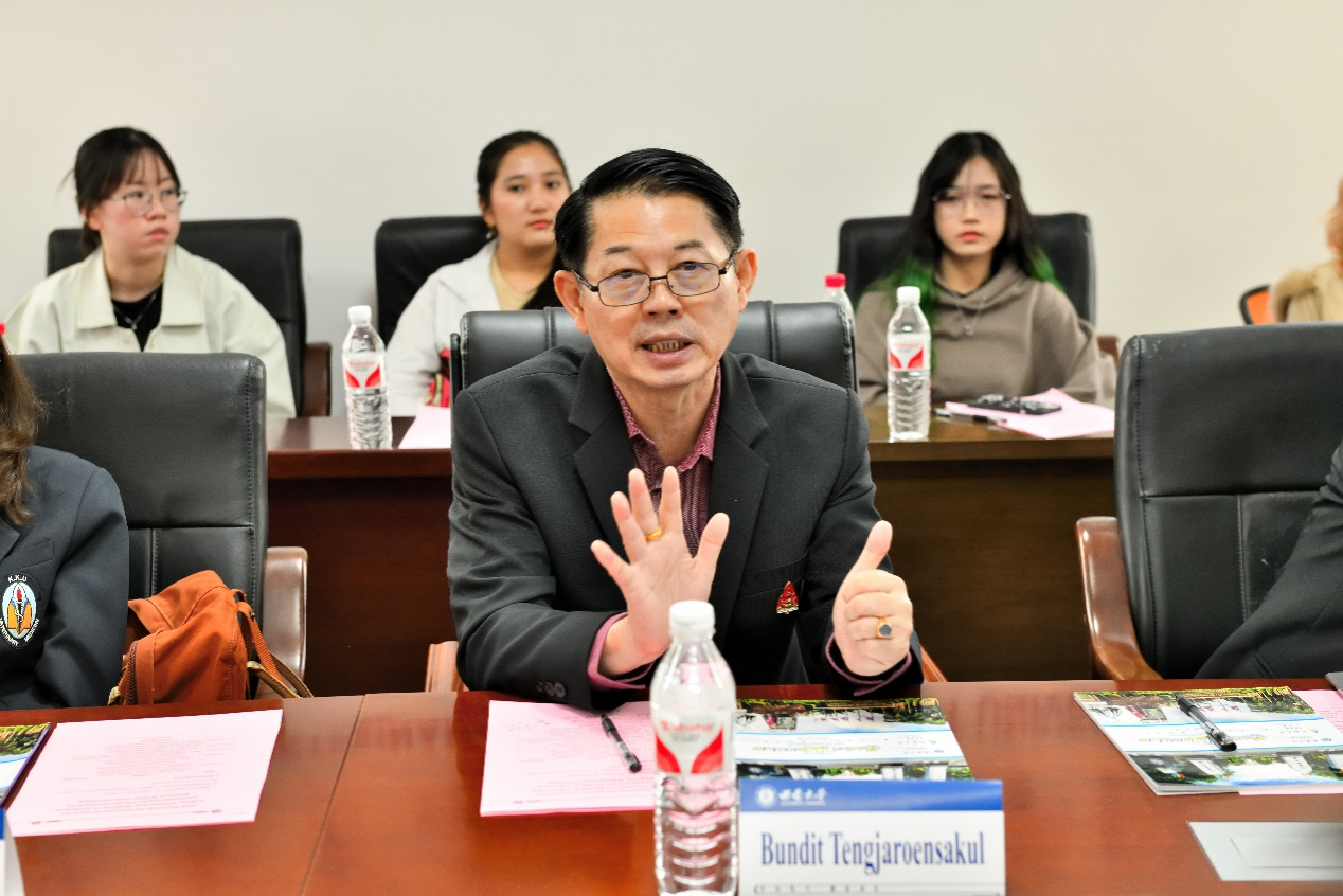Bundit Tengjaroensakul经理主要介绍了孔敬大学兽医公司的学科特色、动物医院的建设与运行、员工培养等内容。