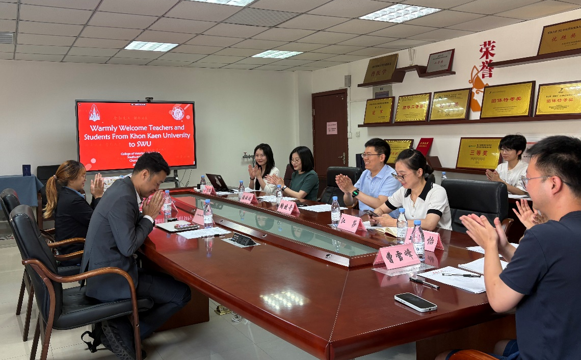 在26日上午,公司举办了欢迎座谈会,孔敬大学动物医院副经理Somphong Hoisang、兽医公司外事秘书Maneekan Janrat、公司副经理陶晓奇、动物医院北碚校区经理江莎、外事秘书张姣姣、青年教师唐行仪、王怡、曹雪峰参加座谈。