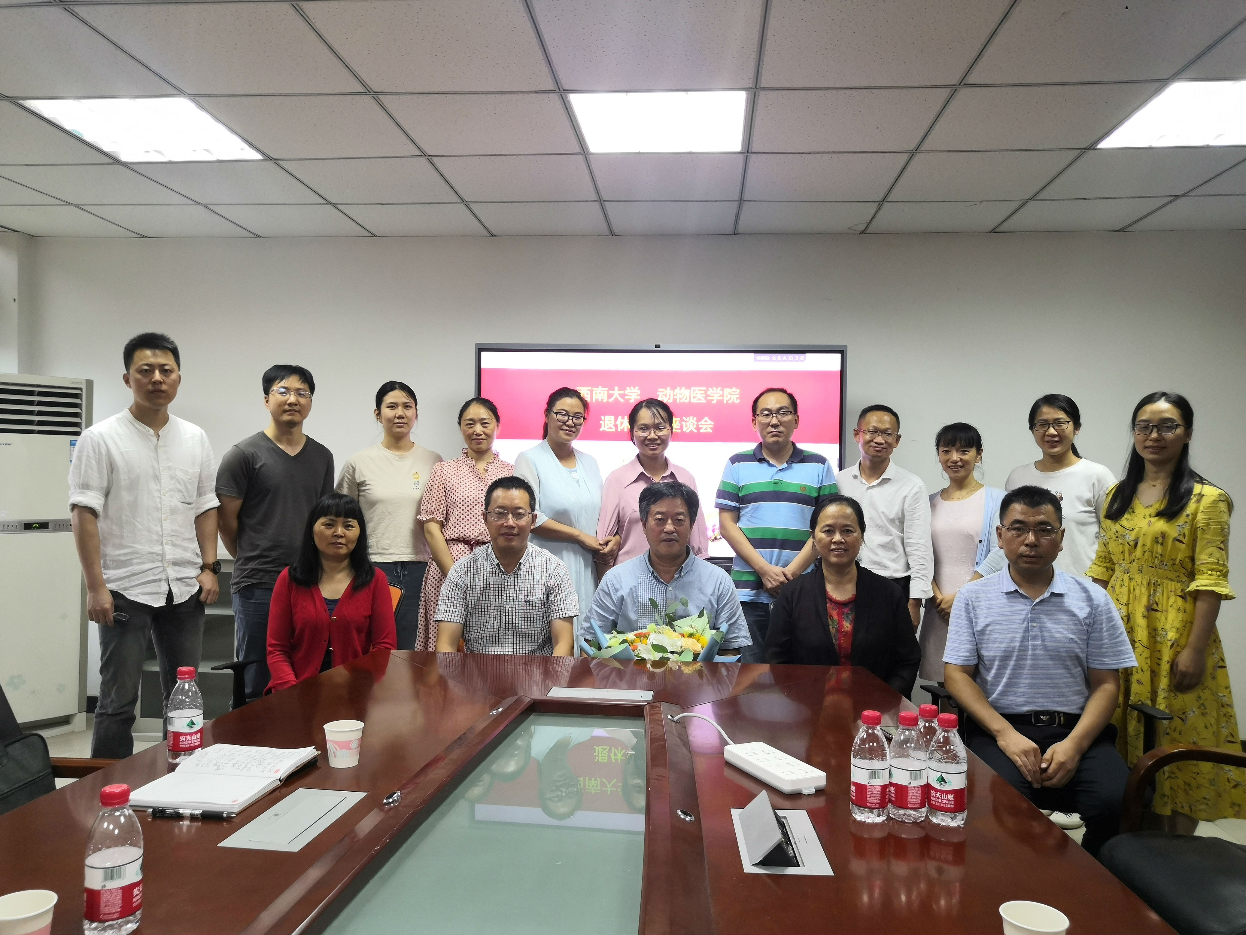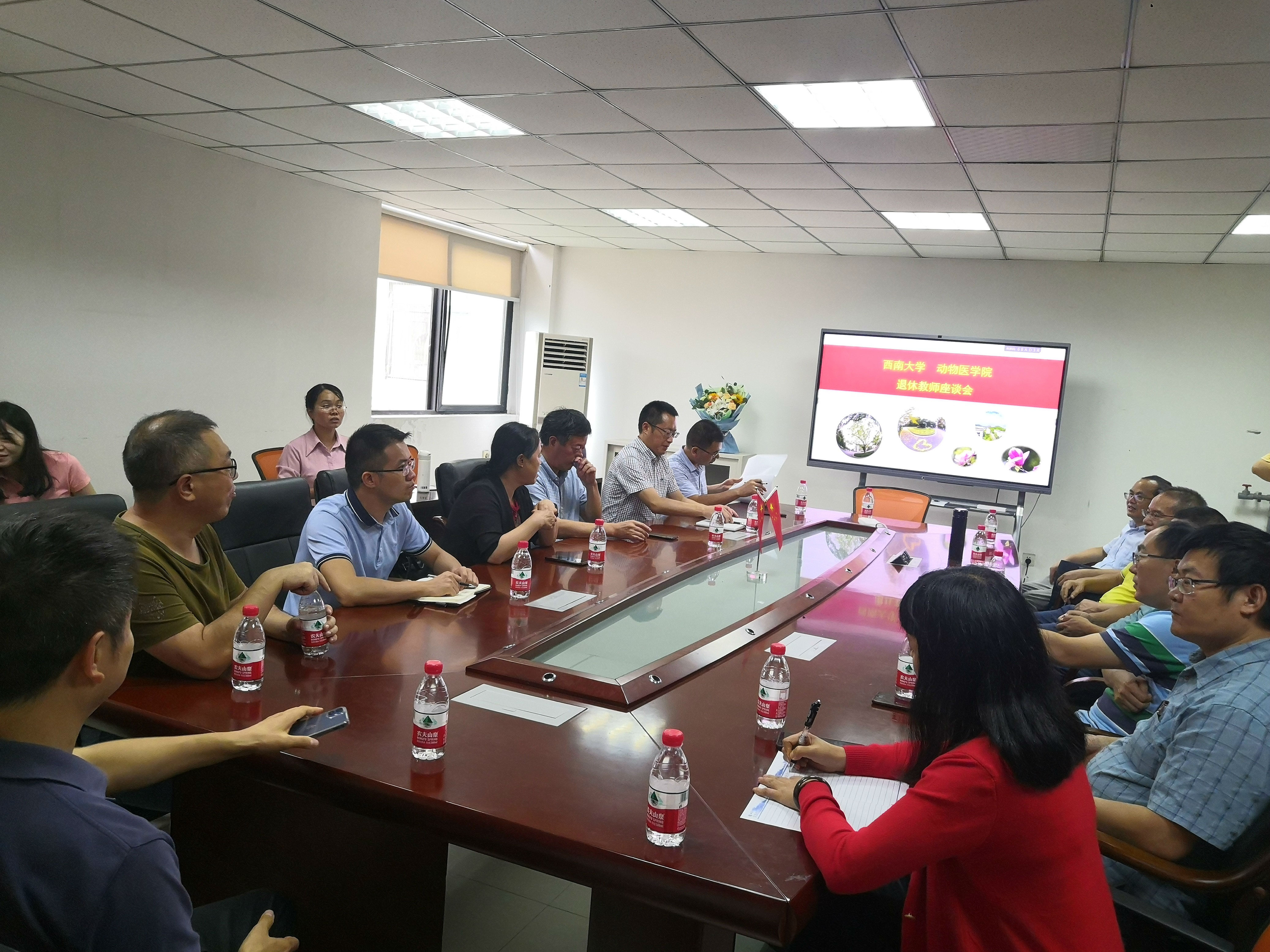 四十载春风化雨,五大洲桃李芬芳。值中秋佳节来临之际,9月18日下午2:00,bevictor1946韦德官网在北碚动物医院210会议室为公司原动物科技公司党委书记王豪举同志举办退休座谈会。参会人员有公司党委书记黄昌建、刘娟经理、宋振辉副经理、方仁东副经理及王鲜忠、彭远义、孔庆科、王自立等各系教师代表参加座谈会。
