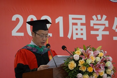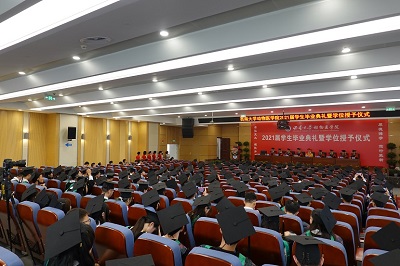 在荣学位授予仪式由副经理宋振辉主持。在荣学位授位仪式上,公司经理刘娟宣读《bevictor1946韦德官网关于2021年博士硕士学士授予的决定》。公司经理刘娟,党委书记黄昌建,党委副书记、纪委书记黄庆洲,副经理方仁东,公司教授马跃、甘玲、李继祥、吴俊伟、周荣琼,公司各系主任上台为毕业生授位,并颁发证书。