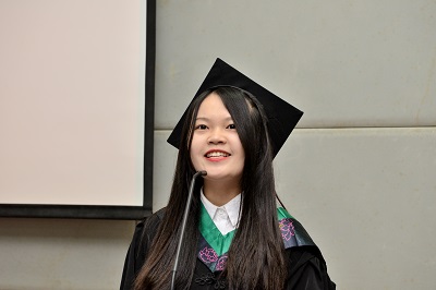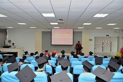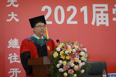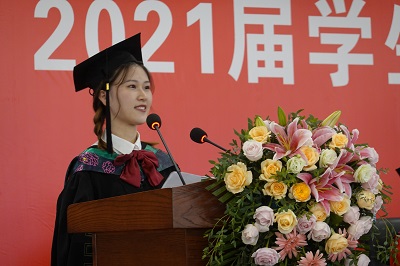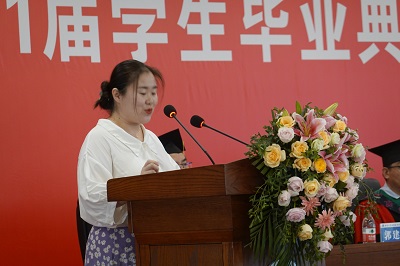 毕业生代表丁书香和许盼盼同学分享了毕业喜悦,感谢母校和老师的培养,表示一定会牢记“含弘光大 继往开来”的校训,自强不息,学无止境,不辜负母校的培养,为母校争光,带着“厚德博学 笃行致新”的院训,诚信做人、承前创新,做社会的栋梁,为母院争气。