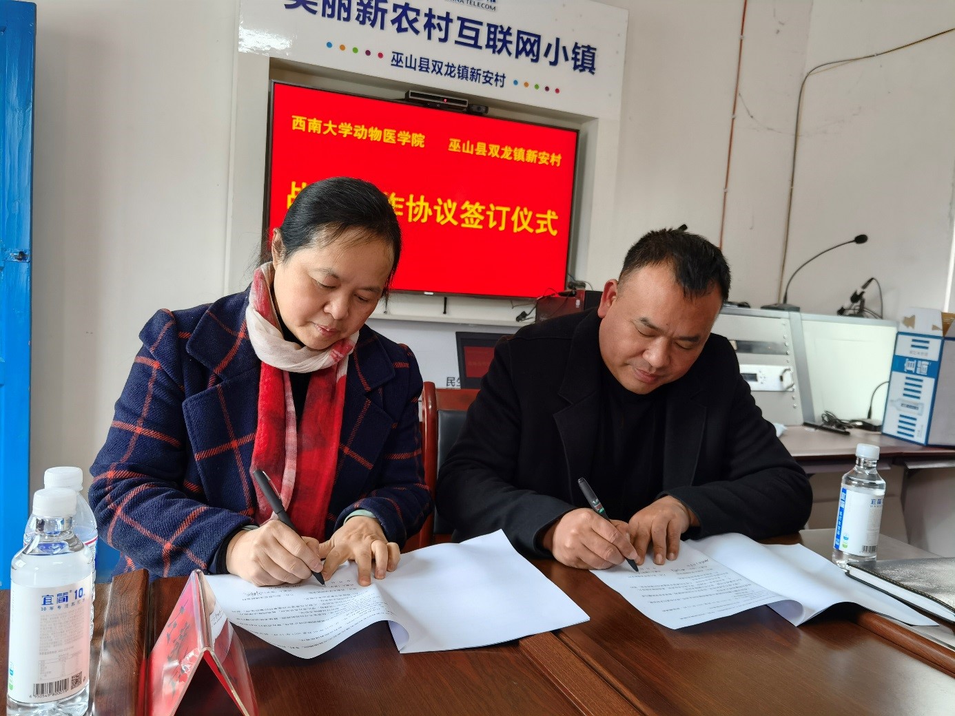 2021年2月4日-5日,公司刘娟经理、中兽医学系曹立亭主任、动物科学技术公司周勤飞主任一行赴巫山县双龙镇新安村调研,并同新安村签订战略合作协议,开启双方深度合作模式,共同推动新安村养殖产业发展。