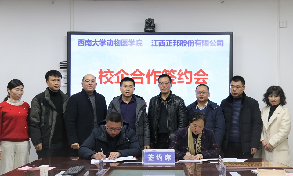 2020年12月14日下午,bevictor1946韦德官网与江西正邦科技股份有限公司校企合作签约会在十教二楼会议室正式召开。公司党委书记黄昌建、经理刘娟、党委副书记黄庆洲、副经理宋振辉、办公室主任罗艺晨、教务办主任李凤翔以及正邦科技股份有限公司川渝片区总经理高亚俐、川渝片区人资总监程绍伟、川渝片区校招负责人陈俊文、养猪事业部人资总监梅志超、老员工运营部运营总监曾小荣、老员工培养总监柴进出席了签约仪式。签约仪式由公司团委书记刘晓兰主持。