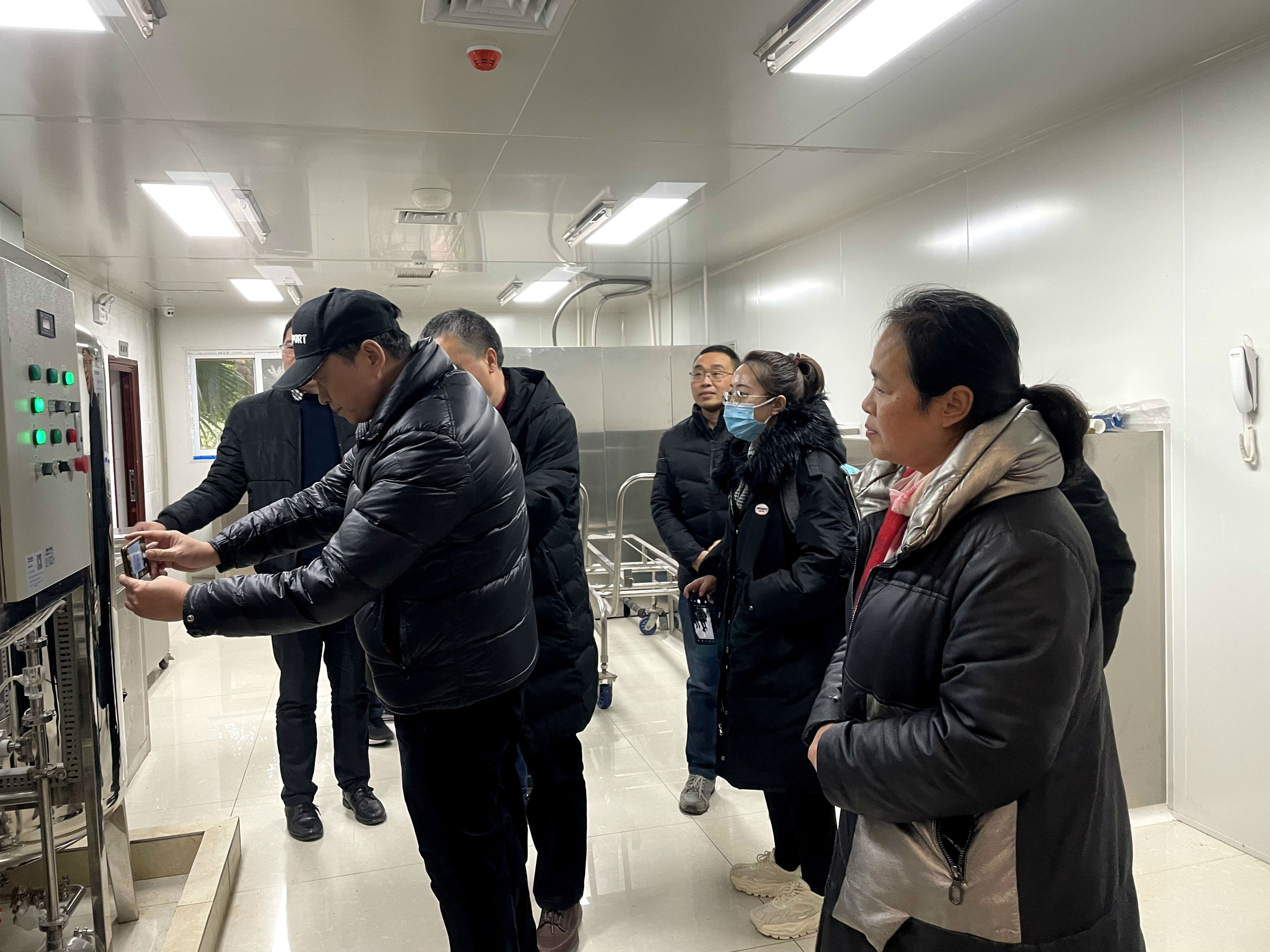 12月29日,市科技局基础处张海坦、王明玉,以及重庆医科大学实验动物中心主任潘永全高级实验师和谭冬梅副研究员、陆军军医大学第三附属医院野战外科研究所刘中禄教授一行莅临公司,开展2020年度实验动物使用许可证年检工作。公司高度重视实验动物中心建设发展工作,公司黄昌建书记、刘娟经理全程陪同进行了相关检查,并出席年检工作汇报会。
