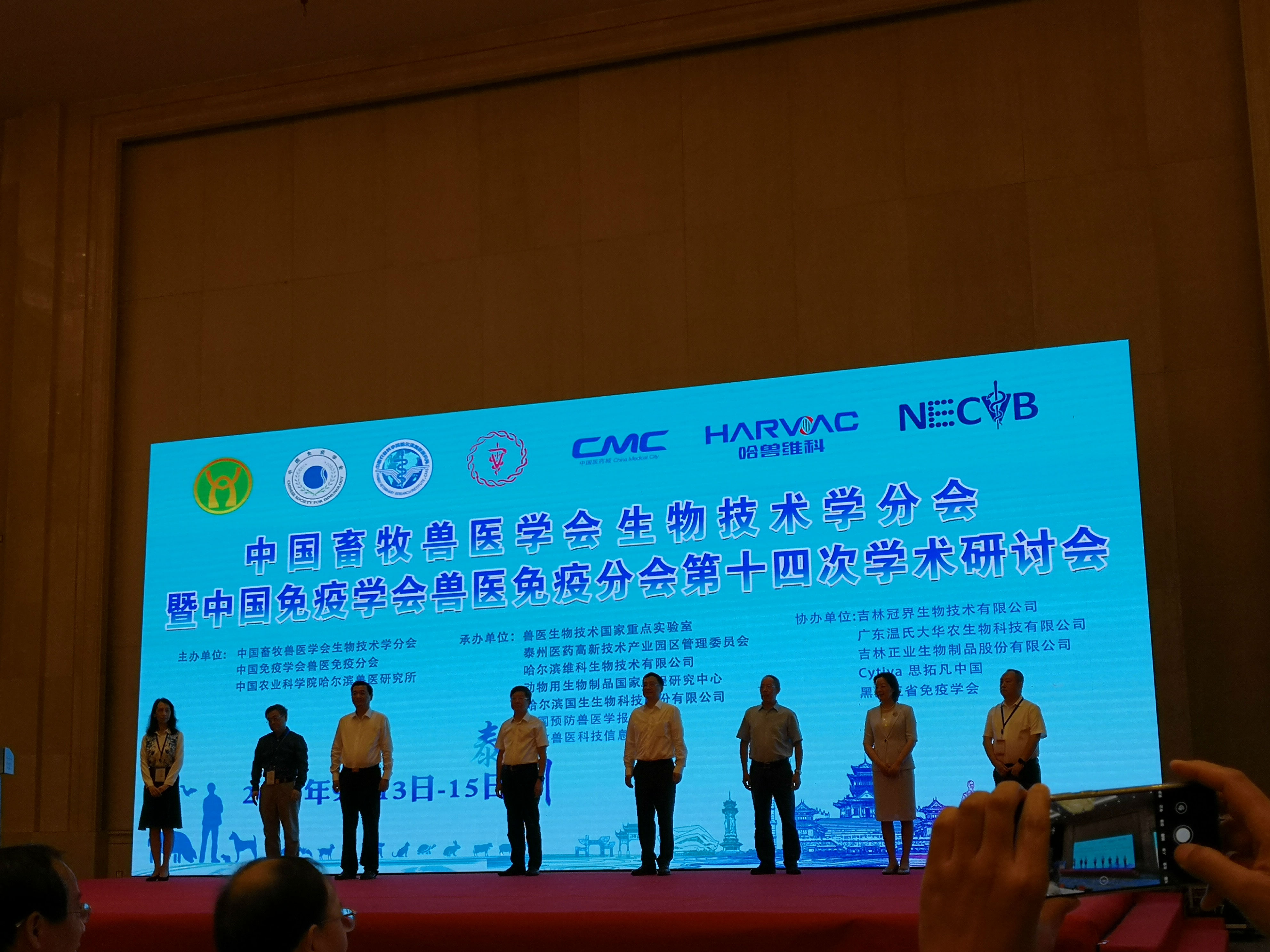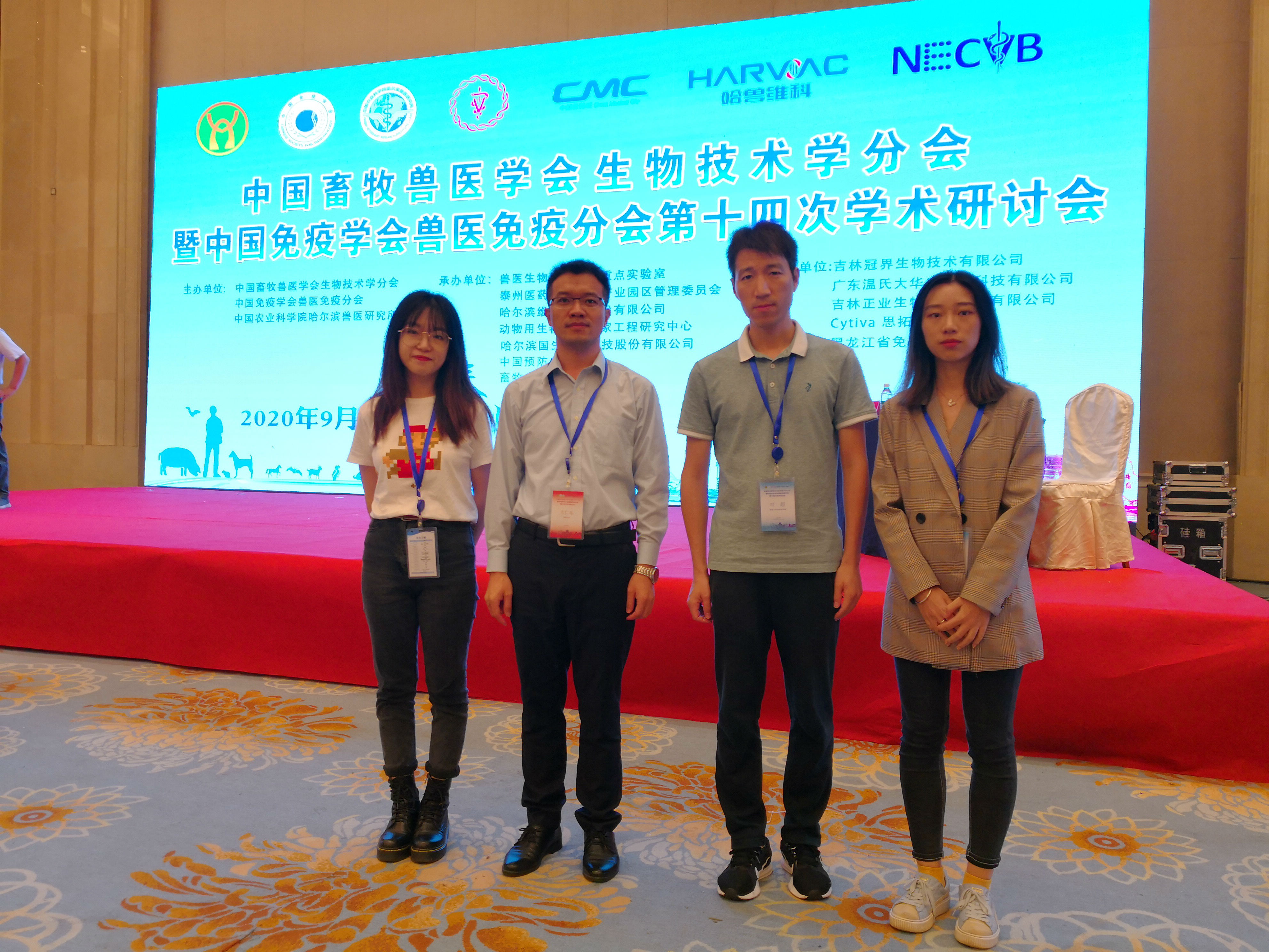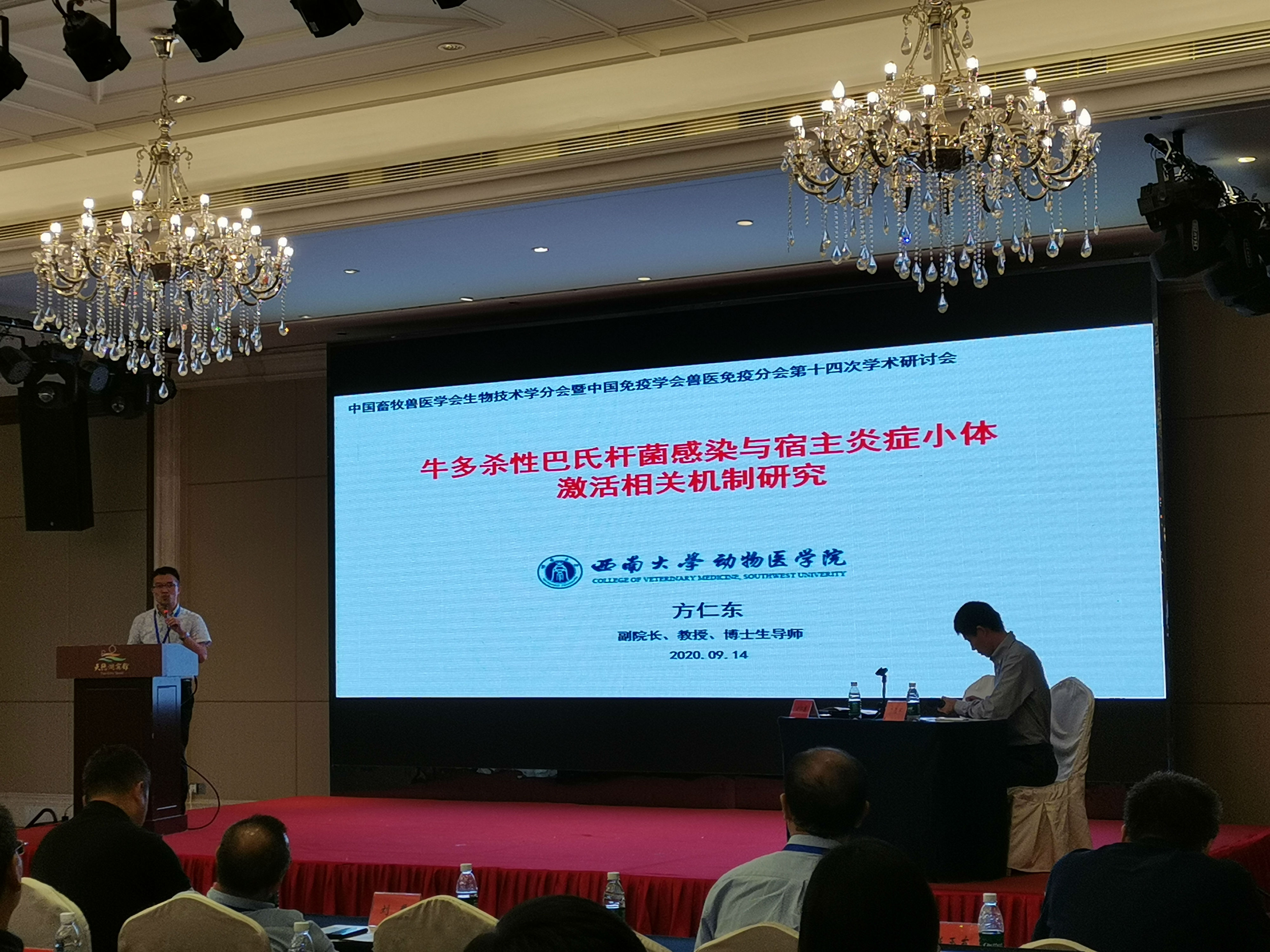中国畜牧兽医学会生物技术学分会暨中国免疫学会兽医免疫分会第十四次学术研讨会于9月13日至15日在江苏泰州举行。大会由中国畜牧兽医学会生物技术学分会、中国免疫学会兽医免疫分会和中国农业科公司哈尔滨兽医研究所主办,兽医生物技术国家重点实验室等单位承办。来自国内各高校、科研院所的300多位代表参加大会。公司副经理方仁东教授、丁红雷副教授、叶超博士及部分研究生代表参加了此次会议。