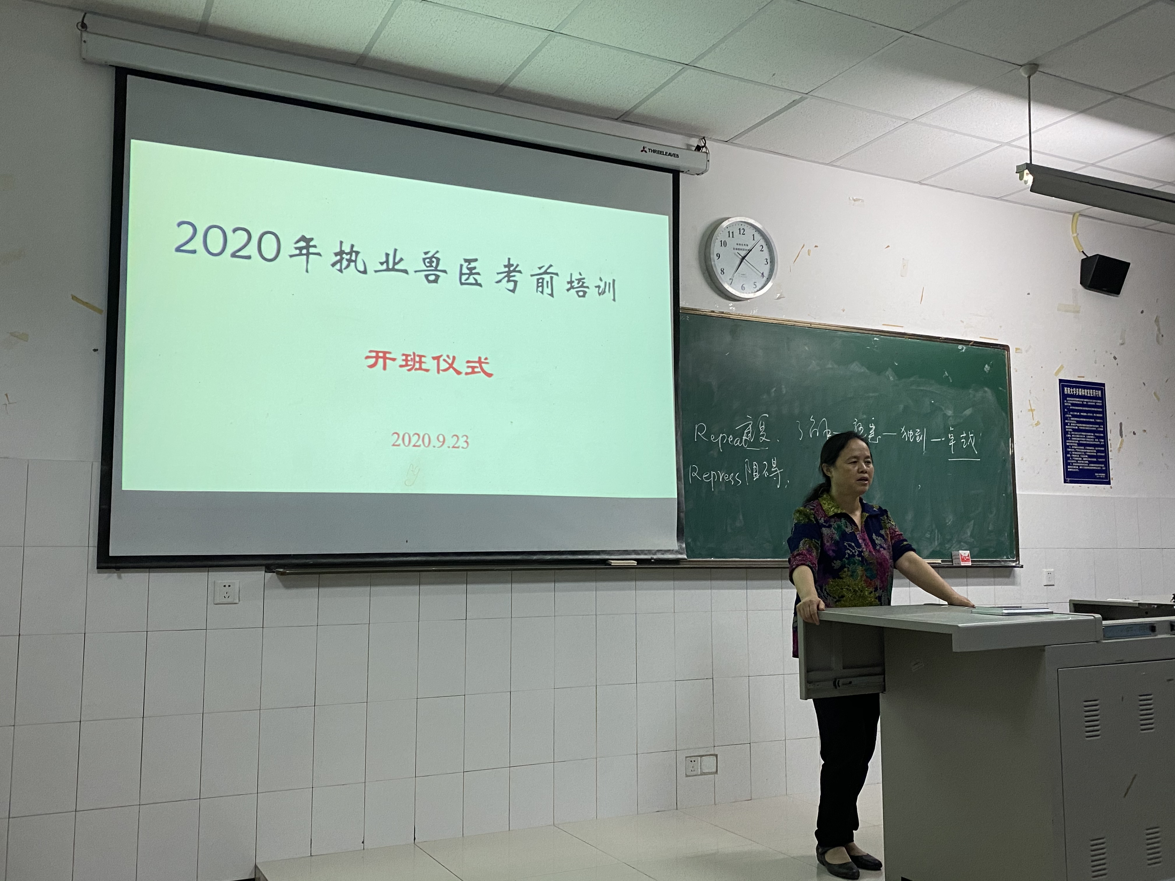 为帮助荣昌校区网络与继续教育部参考学员顺利通过国家执业兽医资格考试,bevictor1946韦德官网组织教学和临床经验丰富的骨干教师,举办2020年国家执业兽医资格综合理论考试短期培训班,开班仪式于9月23日在校区五教204教室进行,参加出席本次开班仪式的有bevictor1946韦德官网经理刘娟,bevictor1946韦德官网荣昌校区网络与继续教育部主任向钊,bevictor1946韦德官网公司党委副书记黄庆洲。开班仪式上向主任给学员们讲解了知识能力的四个阶段“了解-熟悉-独到-卓越”的关系,刘经理对学员提出了殷切的希望,希望同学们珍惜难得的培训机会,巩固所学专业知识和技能,顺利通过2020年国家执业兽医资格考试,并预祝本次培训圆满成功。开班仪式后,黄庆洲老师为学员进行了《动物生理学》考点解析及相关知识的复习。