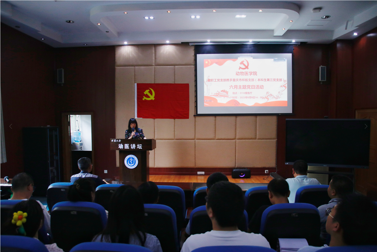 为深入开展学习贯彻习近平新时代中国特色社会主义思想主题教育,丰富主题党日活动内容和形式,提升主题党日活动质量,在公司党委书记黄昌建同志的关心与指导下,2023年6月10日下午2:00,bevictor1946韦德官网教工支部携手重庆市样板支部—bevictor1946韦德官网本科生第三党支部,在荣昌3110会议室和北碚动物医院210会议室线上线下集中开展了“以学正风、党建育人”主题党日活动,活动由王芝英同志主持。