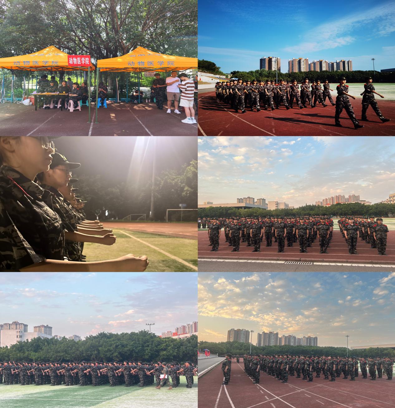 训练中,动医学子在教官的指导下进行站军姿、转体、敬礼、齐步走等军事训练。“稍息、立正、齐步走!”动作整齐划一,步伐铿锵有力。挺直的肩膀,担起责任与理想;坚毅的面庞,面向未来与希望。军训第四天,同学们分别加入了分列式、拳术、匕首操、警棍盾牌术、队列操和单兵及班排进攻战术六大方阵进行第二阶段的练习。动医学子们以火热的身躯为笔,以绿荫操场为纸,书写自己的青春妙笔。