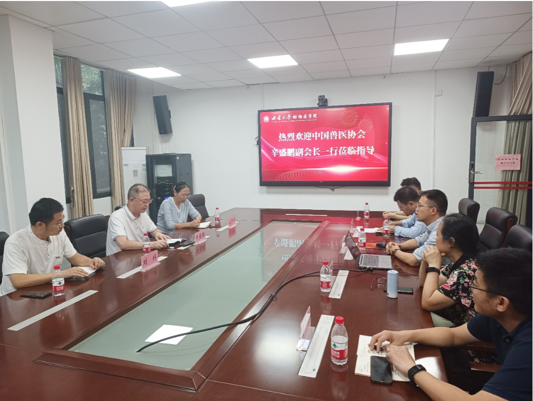 交流座谈会在公司10教207会议室举行。方仁东代表公司对辛盛鹏副会长一行到公司调研交流表示热烈欢迎,对公司的基本情况、人才培养、科研团队和成果、社会服务等情况进行了简要介绍。刘秀丽副秘书长就中国兽医协会基本情况、职能定位和重点工作进行了汇报交流。宋振辉、刘娟、曹立亭、陈红伟、吴柏青等就动物医学专业人才培养、动物药学技能和中兽医技能赛事、中兽医药传统文化的弘扬与传承等方面进行了自由交流发言。辛盛鹏副会长一行认真听取了老师们的汇报交流并有针对性的提出了很好的建议,对公司在兽医人才培养及团队建设等方面所取得的成绩表示肯定和赞赏,对公司积极支持中国兽医协会的各项工作表示感谢!并表示,中国兽医协会是合作交流平台,期望与bevictor1946韦德官网加强联系、交流和合作,共同努力培养更多优秀的兽医人才。