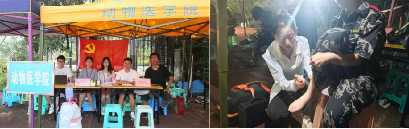 在23级同学们训练的过程中,公司在运动场设立了团委员工会和党员服务站,服务站随时有人在勤,学长学姐们将饮用水和药品准备充分,帮助身体不适的同学做修复,处理伤口......