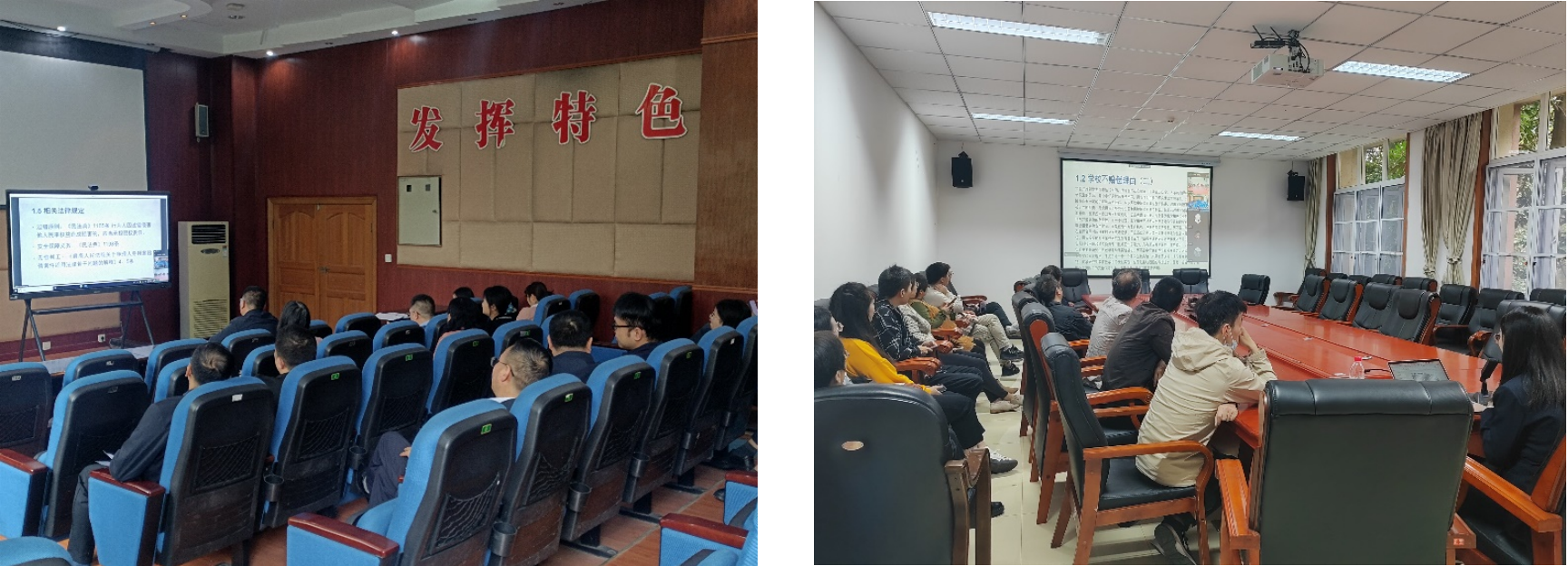 为落实公司《关于开展实验室安全隐患专项排查整治工作的通知》,11月1日上午10点,公司邀请坤源衡泰律师事务所张燕律师到公司开展实验室安全教育培训,本次会议采取线下和线上结合的方式进行,地点分别设置在荣昌校区3110报告厅(线上)、北碚校区37教219(线下),本次培训由公司宋振辉副经理主持,公司部分教师以及研究生参加本次安全培训。