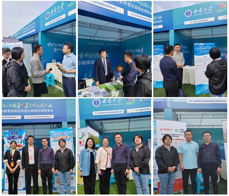 在双选会现场,方仁东经理和罗丹副书记先后与双胞胎集团、牧原集团、重庆大北农饲料科技有限责任公司、北京英惠尔生物技术有限公司、四川德康农牧食品集团股份有限公司和南昌正大畜禽有限公司等企业招聘负责人亲切交谈,详细了解人才需求情况,并希望用人单位与公司建立长期紧密的合作关系,共建平台,共谋发展。