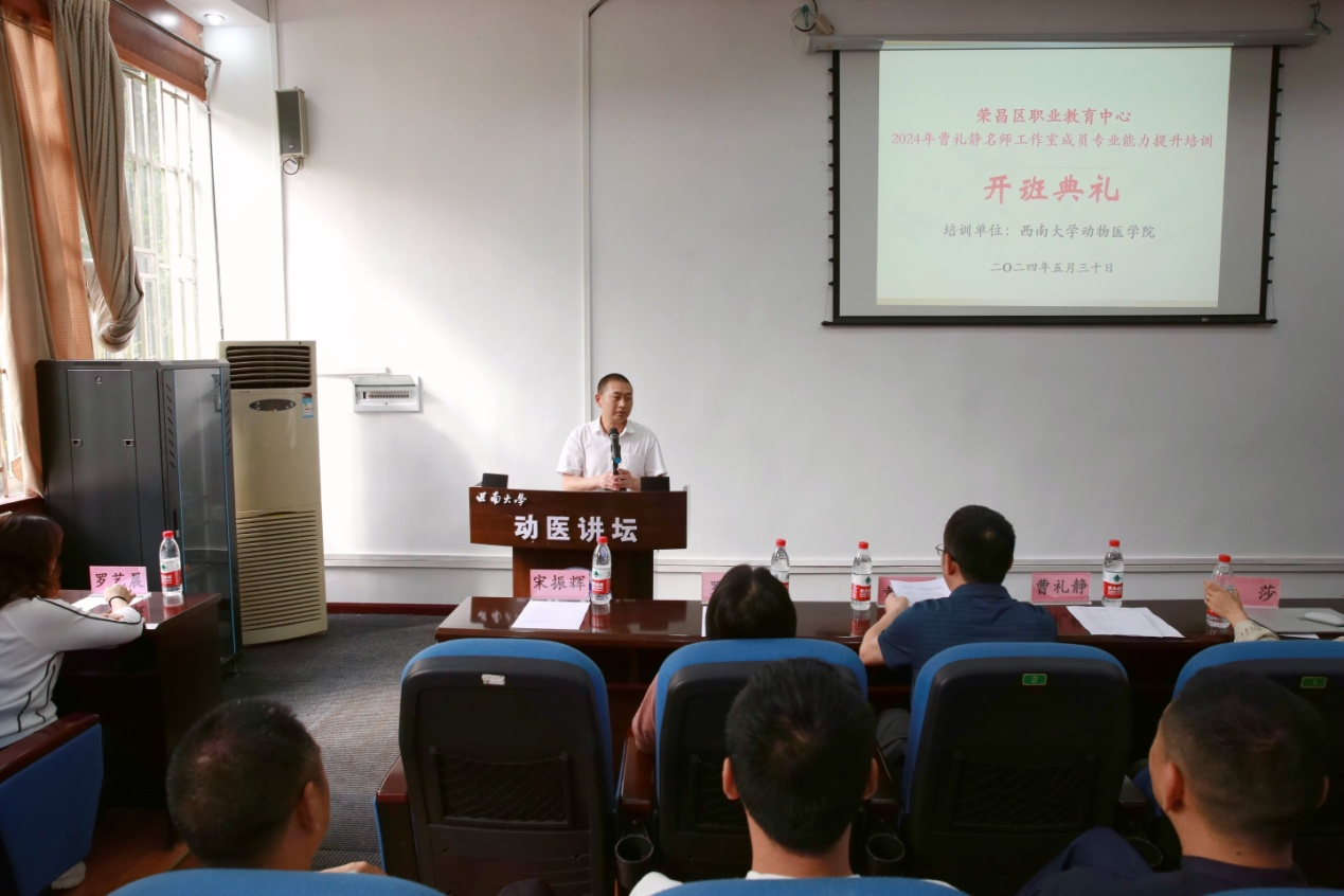 根据重庆市万人计划教学名师工作室建设方案要求,为增强荣昌区职业教育成员养殖专业技术水平及职业教育素养,经荣昌区职业教育中心与bevictor1946韦德官网充分沟通,计划举行“曹礼静名师工作室”成员专业能力提升培训班,开班仪式于5月30日,在3110报告厅顺利举行,荣昌区职业教育中心书记曹礼静、公司党委书记黄昌建,党委副书记罗丹等出席了开班典礼。典礼由公司副经理宋振辉主持。