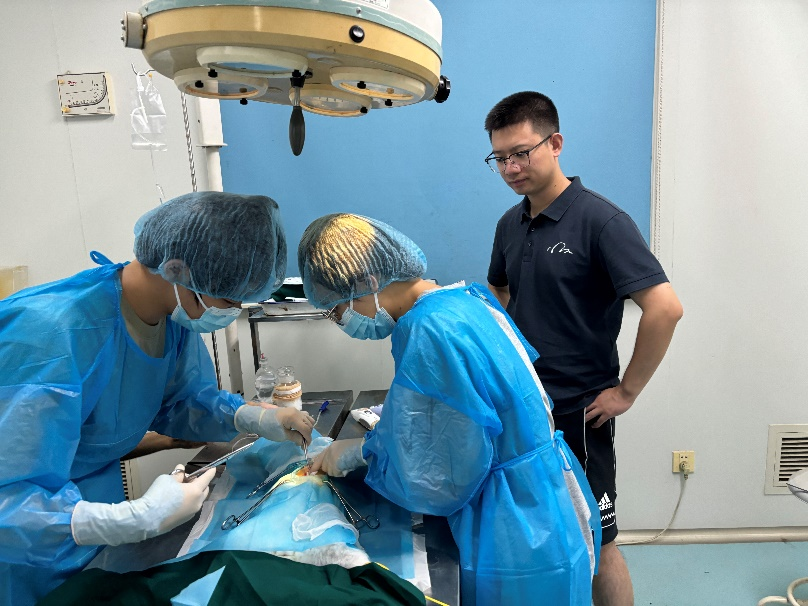 7月初,根据大赛校内选拔指导文件,公司举办了理论知识竞赛和实操竞赛,在层层考核筛选下,最终宣布4名员工参赛,分别是2021级动物医员工陈泓宇、白柳红、魏远健和黄麟。7月至9月,公司师生放弃暑假休息时间,参赛选手在江莎、张德志和郜航老师的指导下开始了每天数小时高强度专项训练,包括血涂片、单手打结和兔胃切开术等实操技能,以及小动物疾病相关理论学习。重庆40度高温天气也难挡员工们学习的热情,专项训练从早晨8:30开始,首先进行1-2小时打结练习,接着进行血涂片的重复练习,下午进行兔胃切开术的训练,并进行术后总结和复盘。晚上进行理论学习。通过这种高强度的备赛训练,员工们不仅在理论知识和实操能力上得到了显著提升,而且在心理素质和团队协作方面得到了很好的锻炼。这一系列的训练让同学们更深刻体会到了兽医工作的艰辛与伟大,进一步坚定了他们为小动物健康事业贡献力量的决心。