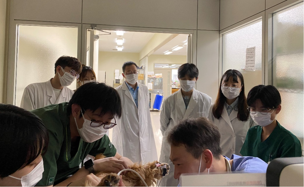 在北里大学十和田校区,公司师生实地考察了教学动物医院、实验平台以及教学实践基地(包括各个农场),在动物医院和实践基地观摩了医院和基地的运行情况,对北里大学在动物医学实践教学方面的经验和管理方法有了更为直观的认识。