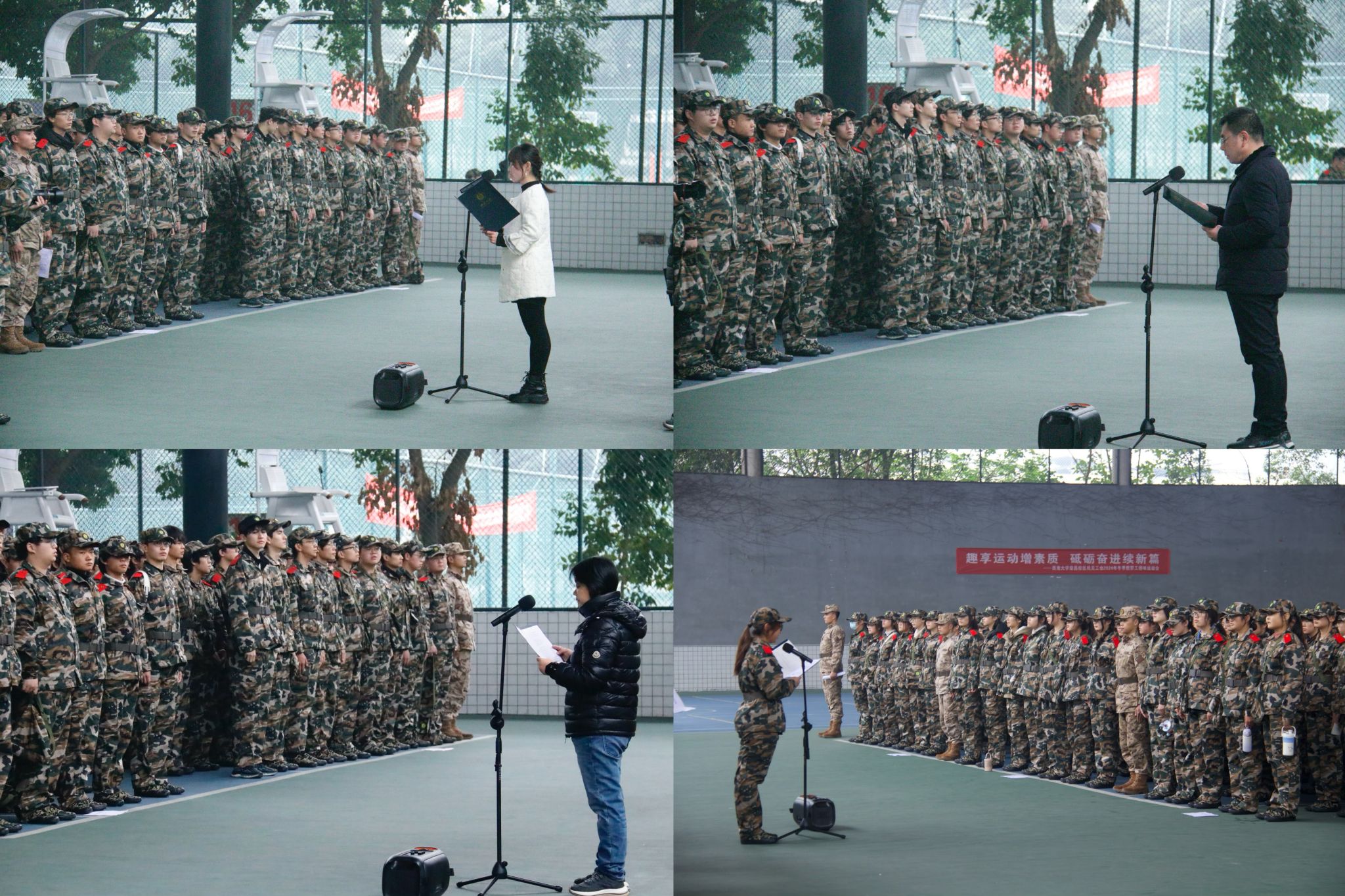 1月10日上午,公司于荣昌校区风雨球场举行军训总结大会,为期14天的冬季集中军训画上了圆满句号。大会在激昂的国歌声中拉开帷幕。2024级本科生王秉祺作为员工代表发言,他代表2024级全体同学向领导、老师、教官及后勤保障人员表达了诚挚的感谢,并分享了自己的深刻感悟。随后,三十五连连长高度肯定了公司参训学子的军训表现,在这14天的训练里,同学们全力以赴、坚韧不拔,充分展现出新时代青年学子昂扬奋进的精神风貌。仪式尾声,全体师生齐唱中国人民解放军军歌,激昂的旋律唱出了大家对本次集中军训的最后告别。