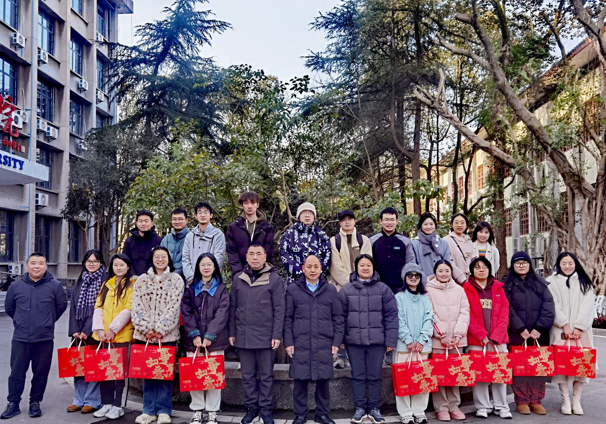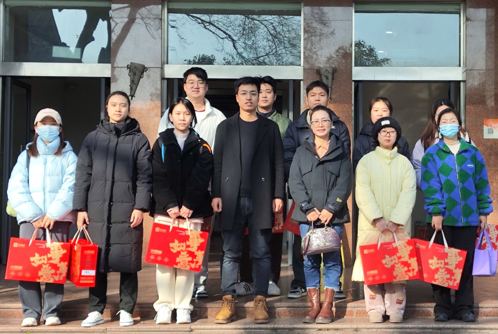 在荣昌校区,周国安、罗丹、宋振辉带着慰问品,为22名留校研究生、本科生送去新春问候和祝福,详细了解员工们留校期间的学习和生活安排,贴心地叮嘱大家,一定要注意身心健康,保持规律的作息,以更好的状态迎接新的一年;在北碚校区,研究生导师代表江莎与13名留校研究生、本科生深切交谈,并把准备好的新春礼物递到同学们的手中。每一份慰问礼物都承载着公司对员工的牵挂,同学们接过礼物,脸上洋溢着幸福的笑容。