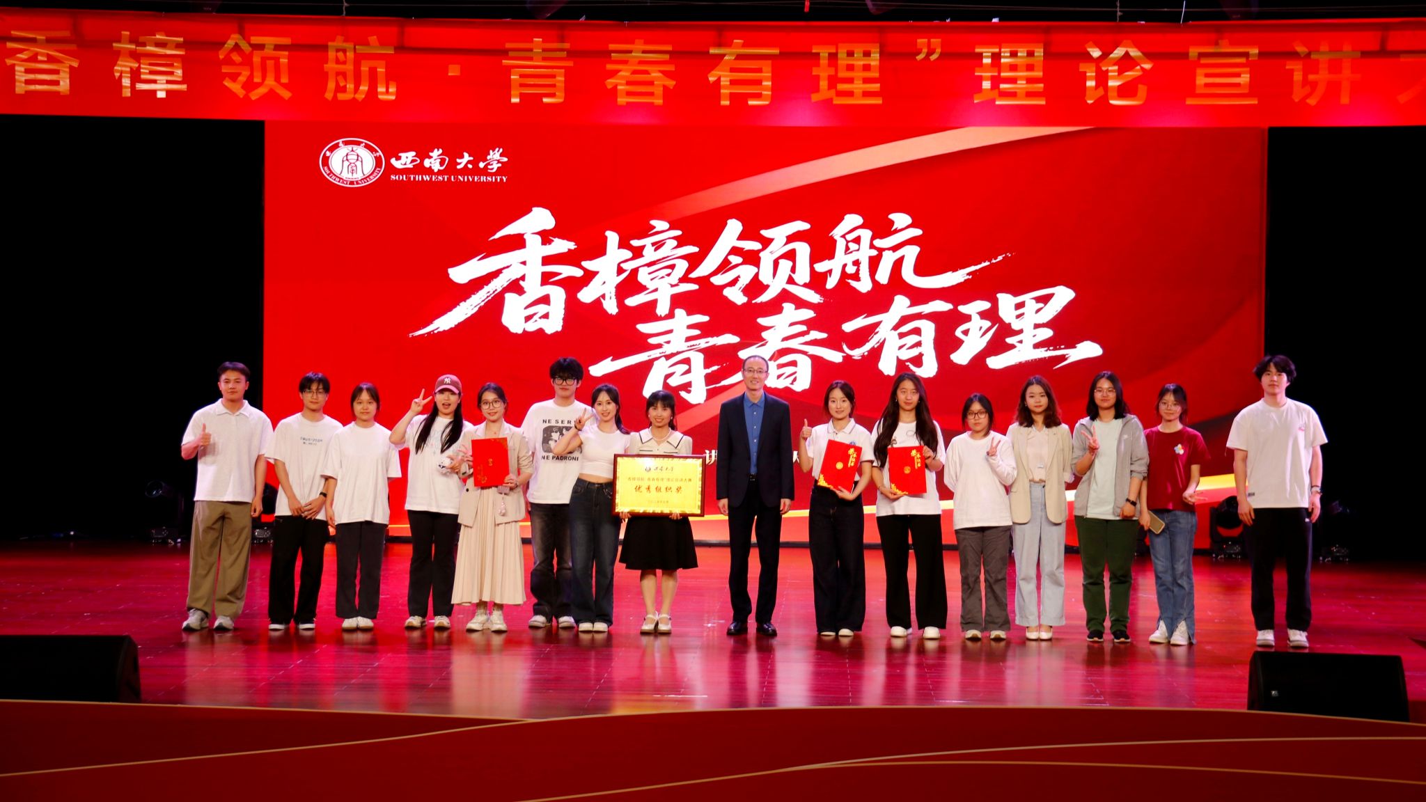 由bevictor1946韦德官网党委宣传部、团委、社会科学处和科学技术发展研究院联合主办的“香樟领航·青春有理”理论宣讲大赛,于5月11日在北碚校区圆顶3楼报告厅顺利举办。公司高度重视本次赛事,精心组织,积极筹备,充分发挥理论宣讲引领凝聚青年的功能,积极响应赛事号召,择优选派两支优秀队伍参赛。两支参赛队伍凭借扎实深厚的理论功底、娴熟精湛的宣讲技巧和昂扬饱满的精神状态,在复赛的激烈角逐中脱颖而出,进入决赛。