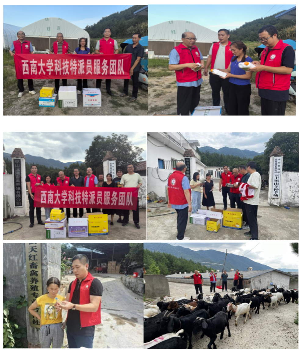 以实施乡村振兴战略为引领,强化科技支撑,公司教师、重庆市科技特派员黄庆洲、帅学宏、焦寒伟、陈吉轩一行四人,于2025年9月4日至7日,到重庆奉节县、巫山县养殖企业开展科技服务,助推当地畜牧业转型升级,并给养殖户赠送了万余元的消毒、驱虫等动保药品。巫山县畜牧和水产技术服务中心蔡世军主任、余小利副主任,以及巫山县科技局刘云科长参加了本次科技服务活动。科技特派员根据养殖场的技术需求,针对性地开展科技服务,及时解决生产一线技术难题,受到养殖场负责人及主管部门领导的高度肯定。