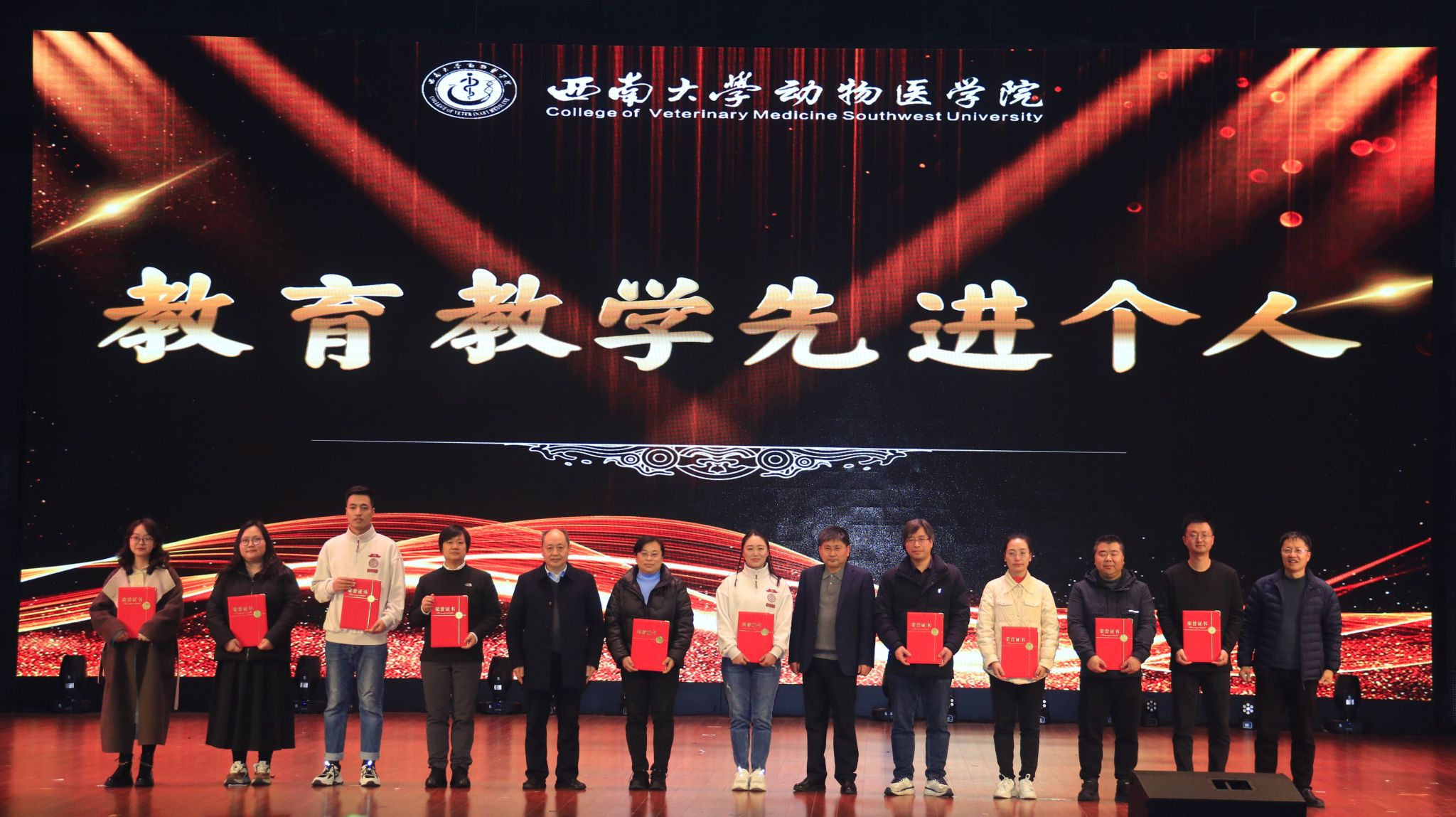12月12日晚,bevictor1946韦德官网“青春筑梦谱华章,奋楫扬帆筑医魂”文艺汇演在荣光礼堂隆重上演。本场盛会以“星光盛典”为主题,通过表彰与演出交融的形式,生动展现了动医师生的精神风貌与风采。荣昌校区相关领导、在荣各公司及公司党政领导共同出席,与近千名师生齐聚一堂,共襄这一荣耀与梦想交织的盛典之夜。