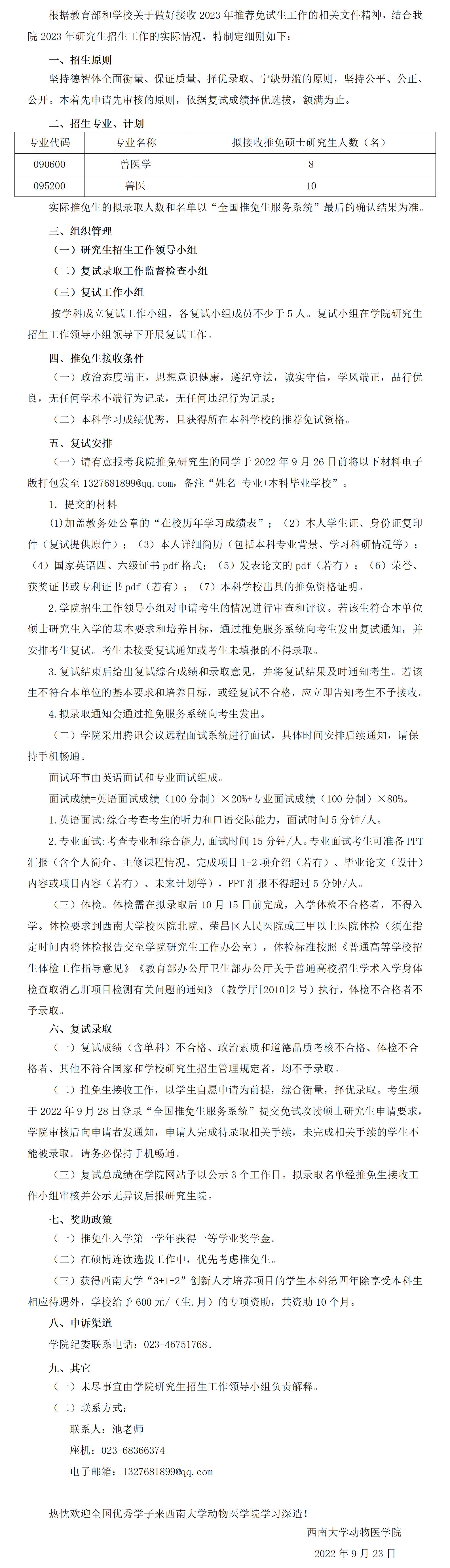 bevictor1946韦德官网2023年接收推荐免试研究生复试录取工作细则