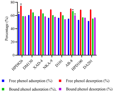 图1. 不同树脂对沙棘籽多酚吸附与解吸附性能比较