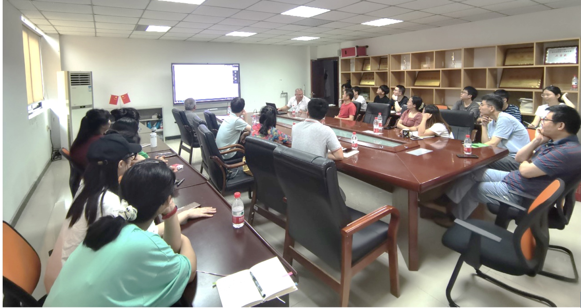 7月18-20日,美国堪萨斯州立大学兽医公司的Philip R. Hardwidge 教授应邀来公司进行学术交流。19日上午,学术沙龙在98教210会议室和腾讯会议线上线下方式开展,由预防兽医系李能章副主任主持,公司彭远义教授、孔庆科教授等40多名师生参加了沙龙。