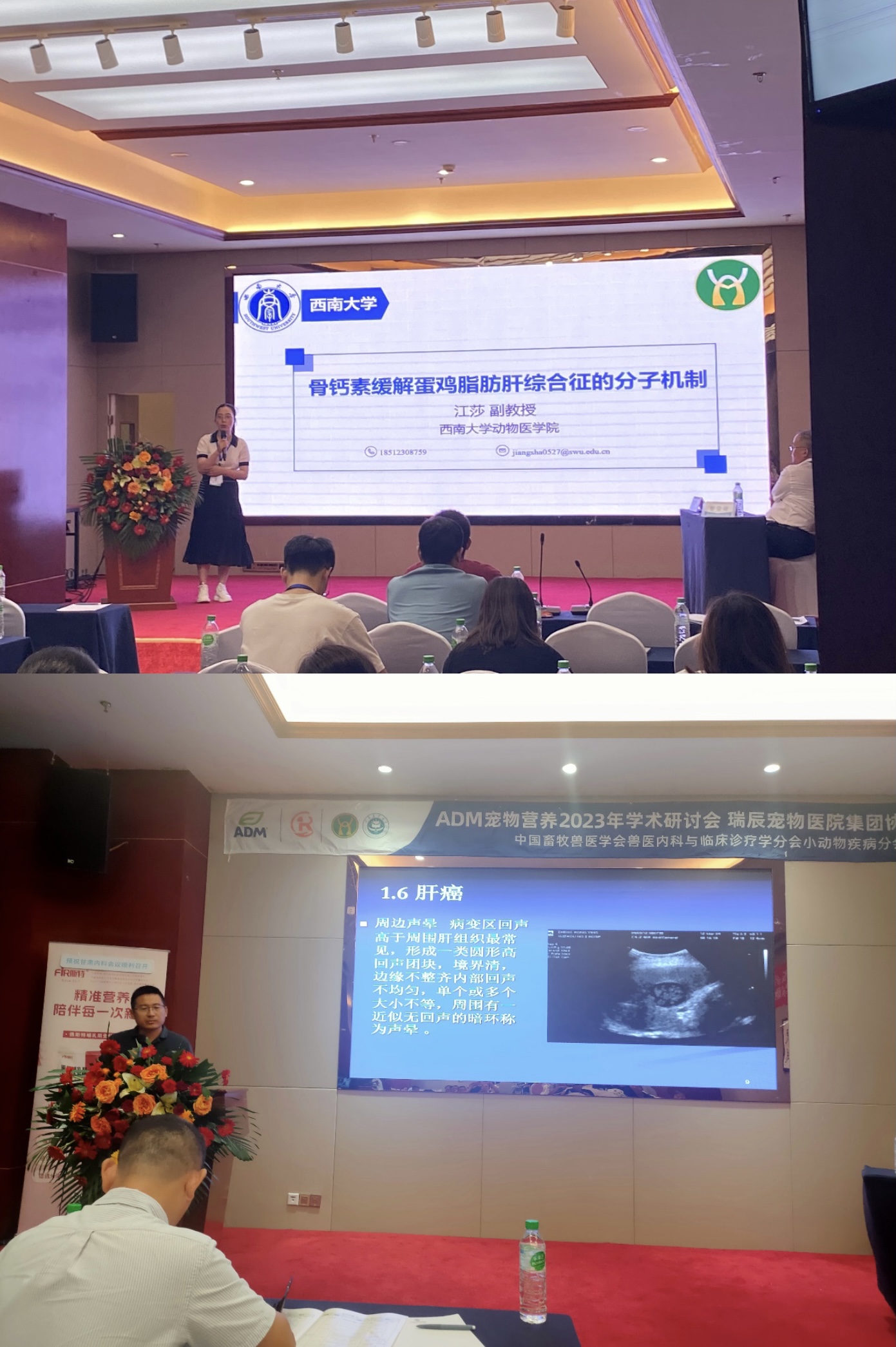 本次会议以“提高教学科研诊疗水平,保障动物养殖健康发展”为主题,围绕兽医内科与临床诊断最新教学科研成果和临床实践进行了7个大会主题报告和45个分会场报告。江莎和王庆华分别以“骨钙素缓解蛋鸡脂肪肝综合征的分子机制”和“B超在兽医临床诊疗的应用”为题进行汇报,郜航进行壁报展示。公司李前勇、易华山和王庆华当选为内科与临床诊疗学分会理事。