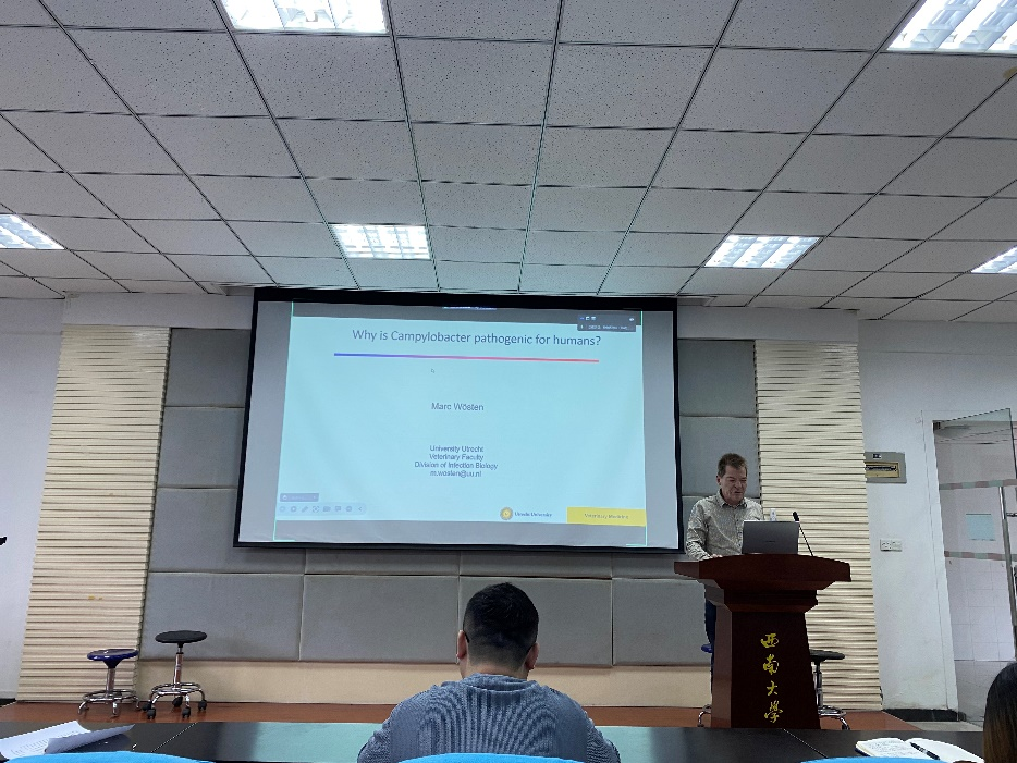 11月13日及14日,荷兰乌特勒支大学兽医公司的教授、博士生导师Marc M.M.S.M. Wösten教授以及来自荷兰国家食品安全局的高级研究员Linda F.F Kox来公司开展学术交流。学术沙龙分别在荣昌和北碚校区开展,公司宋振辉副经理主持,公司相关领域的教师、研究生、本科生等参加交流。