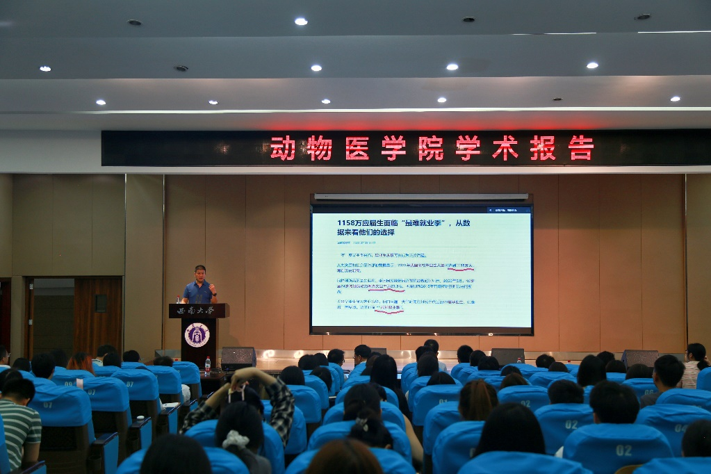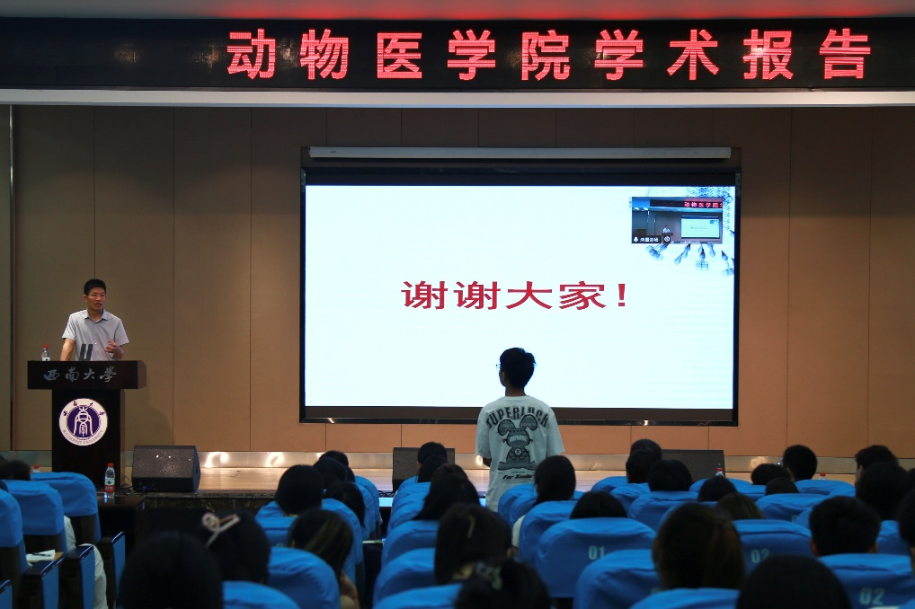 刘益民详细介绍了中国农科院哈尔滨兽医研究所的发展历史、硬件设施、科研平台、研究领域、项目获批、附属企业发展现状、科技成果转化以及研究生的招生和就业情况,他以启迪的方式,向同学们传授了如何确定自己的就业目标、如何选择适合自己的机构读研和研究生导师等宝贵经验,极大地激发了同学们的热情,坚定了他们继续深造的决心。